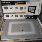 The Polaroid 7" Digital Picture Frame (PDF-750W) features a sleek black wood frame and mat, adding a touch of elegance to any room. With a 16:9 display aspect ratio and a 7-inch LED display, this digital photo frame is perfect for showcasing your favorite photos in high resolution. It is compatible with various external memory cards such as SD, MMC, and Memory Stick, and supports JPEG media formats. Additionally, the frame offers convenient features like a calendar and clock, making it a stylish and functional addition to your home decor.