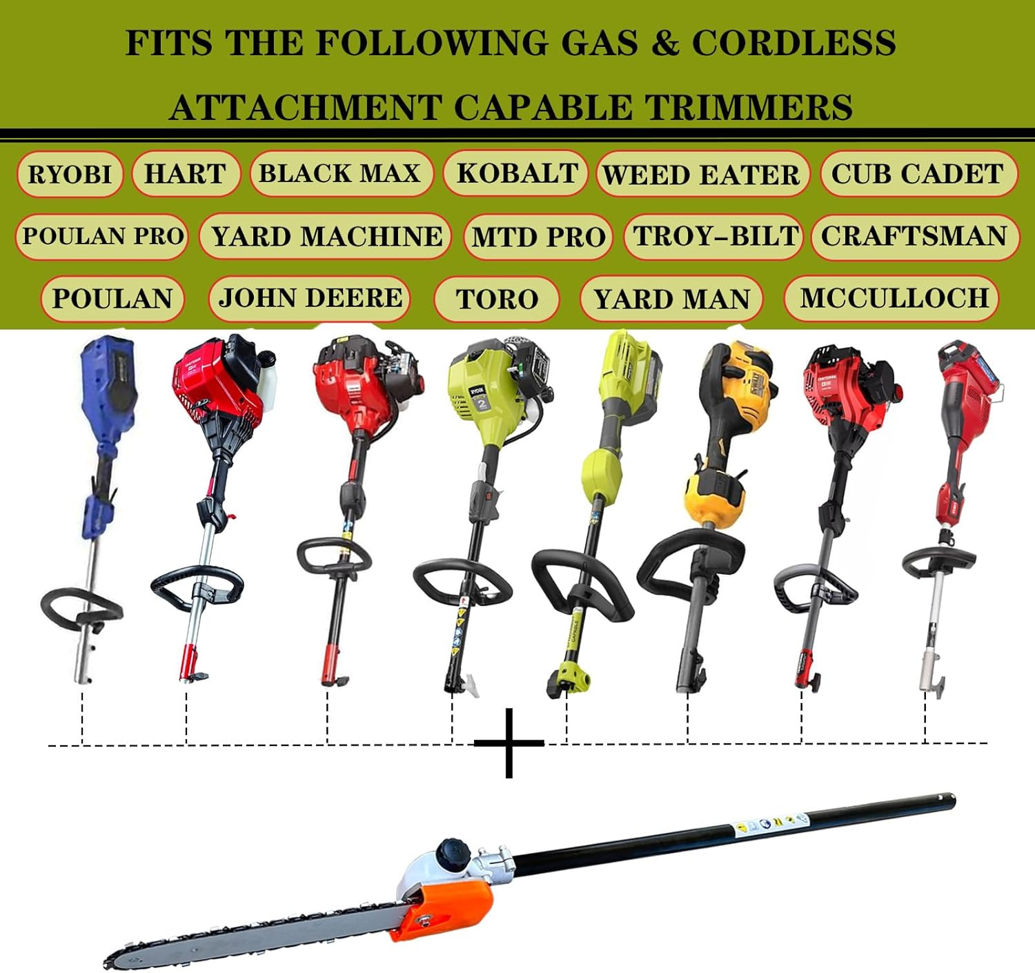 Store New Arrivals Add to Favorite View Feedback Contact Pole Saw Attachment (12") Fits for Ryobi,Kobalt,Craftsman,Weed Eater,Mtd Pro,Troy-Bilt,Toro,John Deere,Cub Cadet,Hus 128LD Most Brush Cutter/String Trimmer (Orange) Description Item model number SD-RYPRN Part Number RYPRN Batteries Required? No Power Source Battery Powered/Corded Electric/Gas Item Package Quantity 1 Color Orange Product Dimensions 34"L x 2"W x 2"H Material Aluminum Item Weight 4.2 Pounds Blade Length 12 Inches Batteries Included? No Special Features Lightweight Included Components Attachments packaging includes:1 set 12" Pole Saw Attachment and Installation tools Product specifications: Operating rod diameter 1"/ 25.4mm, Drive Shaft connector: Square shape, Side length:0.2"/ 5mm Fits for:Ryobi,Homelite,Hart,Black max,kobalt,Weed Eater,Cub cadet,Poulan pro,Yard machine,Mtd pro,Troy-Bilt,Craftsman,Poulan,John Deere,Toro,Yard man,Mcculloch,DE WALT,Hus 128LD most gas & cordless attachment capable systems Low power lithium battery power head may not be able to drive, causing jamming. Please carefully check the product specifications and models before purchasing to avoid purchasing errors Chain model: 3/8" LP Pitch, .050" Gauge, 44 Drive Links,Please add lubricating oil before use This pole saw with its 12 inch pole and chain, can cut limbs up to 8 inches in diameter. It is equipped with an automatic oiler, which can achieve consistent chain lubrication and longer chain life, and is equipped with a tool based chain tensioning device for precise chain adjustment. Steel shafts provide additional durability This Pole Saw Attachment can be easily connected to most brands' power heads with accessories, bringing versatility and convenience to your yard work. Clean and crisp cutting can be done on tree branches, dead branches, and dense shrubs. Save time, money, and space ABOUT US We offer the best prices around on high quality products. Our E-store includes media such as books, movies, music and games while offering electronics, toys, sporting apparel, clothing, tools, general home, garden items and more. SHIPPING We are always working hard to ensure your package arrives as soon as possible. Please understand that some factors like weather, high postal traffic, and the performance of shipping companies are outside of our control. We offer free shipping to the lower 48 states and ship within 2 business days of payment, usually sooner. We do not accept P.O. Boxes. Please provide a physical address. For shipping outside of the continental USA, we only use eBay's Global Shipping Program.The item is shipped to KY and then sent to the rest of the world. International customers are responsible for all duties and taxes. Continue to check out in order to calculate costs for shipping the item to your country. Messages regarding eBay's Global Shipping Program MUST be directed at eBay EXCLUSIVELY. RETURNS We offer a 30-Day Return Policy on items which you are not completely satisfied with. You have the option for a full-refund or an exchange of the item. No returns are available on items shipped outside of the USA. PAYMENT We accept PayPal. CONTACT US This page content is yet to come Please ad us to your favorite seller and visit again later Thank You CUSTOMER SATISFACTION We try our very best to make sure every customer is completely satisfied. If there's a problem, message us! We're happy to help. WE ACCEPT Copyright © 2021 AutoDS. | All Rights Reserved