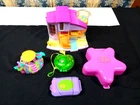 Please read all as we will be as honest of what we know or seen with these-Fairy light wonderland 1993-Camera 1998-Tropical pet hut , Green apple & club house 2000-Clubhouse sounds work which we did a video that wouldn't upload I guess because camera was moving not sure but the 4 sounds due work & does not come with 3 AA batteries used for it-The camera battery compartment is clean & assume it is meant to flash but we couldn't get it to do anything-Not sure what the Fairy wonderland is supposed to do but couldn't get the battery compartment door open-These are all old so there are some scratches & wear-Nothing alarming most scratches are on the backs which is to be expected & the camera front shows wear which also would be because it's a camera & am sure alot of pics have been taking with it :)-Of coarse the 2 older are Bluebird toys & newer are Mattel-Have a great day ! d1124sbf-for our use