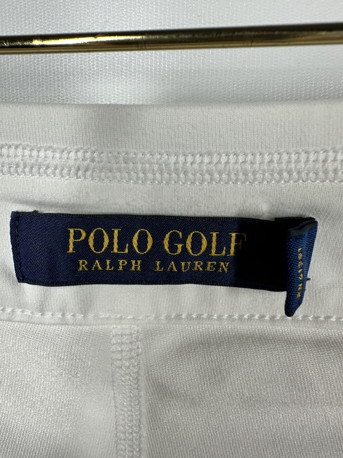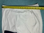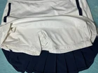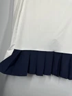 Elevate your golf or tennis game with this stylish Polo Ralph Lauren Golf Women's L White Navy Pockets Pleated Skort. The skort is made of a comfortable and stretchy knit fabric blend of polyester and elastane, with a mid-rise elastic waist for easy movement. It features a solid pattern with a classic white and navy color scheme, accented with a pleated design and the iconic Polo Golf logo. This skort is perfect for casual occasions and can be easily cared for with machine washing. It is a short skirt with pockets, making it both functional and fashionable. Whether you're on the golf course or playing tennis, this skort is sure to make you look and feel great.