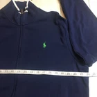 Polo Ralph Lauren Jacket Mens XL Navy Blue Full Zip Sweatshirt Jacket It has a small hole Olin the back shoulder please look at pictures 22#1418