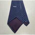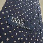Polo Ralph Lauren silk necktie features a classic polka dot pattern in white over a deep navy blue ground. Hand-made in the USA from imported fabric, this tie offers a refined aesthetic suitable for professional or formal settings. The 100% silk construction provides a smooth texture and elegant drape, finished with a contrasting purple tipping on the reverse side.