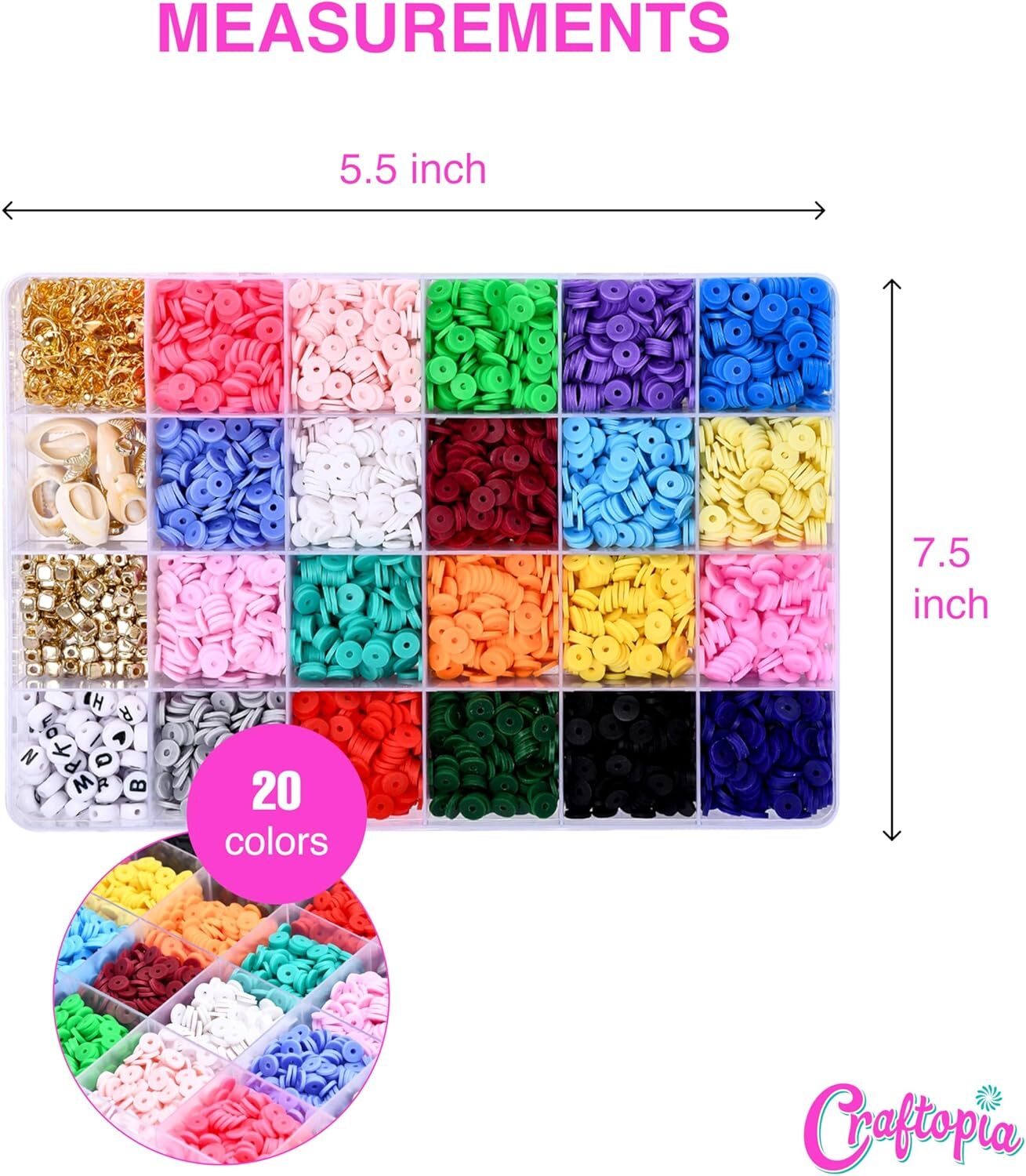 About this item UNLEASH YOUR CREATIVITY: Dive into the world of jewelry making with our bracelet making kits. This clay bead bracelet kit is designed for easy and enjoyable crafting. No skills required, just a spark of inspiration and our friendship bracelet kits. EXPLORE ENDLESS POSSIBILITIES: Our comprehensive making bracelets kit opens up a world of endless possibilities. Featuring an abundance of clay beads, get ready to craft a wide variety of stunning jewelry pieces with our bead kits. ORGANIZED FOR CONVENIENCE: Each color in our beaded bracelets kit is neatly stored in its own compartment. Say goodbye to worries about bead color mixing and embrace hassle-free crafting with our bead making kit. ABUNDANT SUPPLY OF RIBBON: With a generous length of 50 yards, our ribbons provide ample supply for all your crafting needs. Whether you're working on a small project or a large one, our ribbon pack has got you covered. VIBRANT PINK RIBBON FOR LIVELY ACCENTS: Add a pop of color to your projects with our pink ribbon, 1 1/2 inch, 100 yards. Its vibrant shade adds liveliness and freshness to any craft. Dimensions: 15 x 13.8 x 0.9 inches.