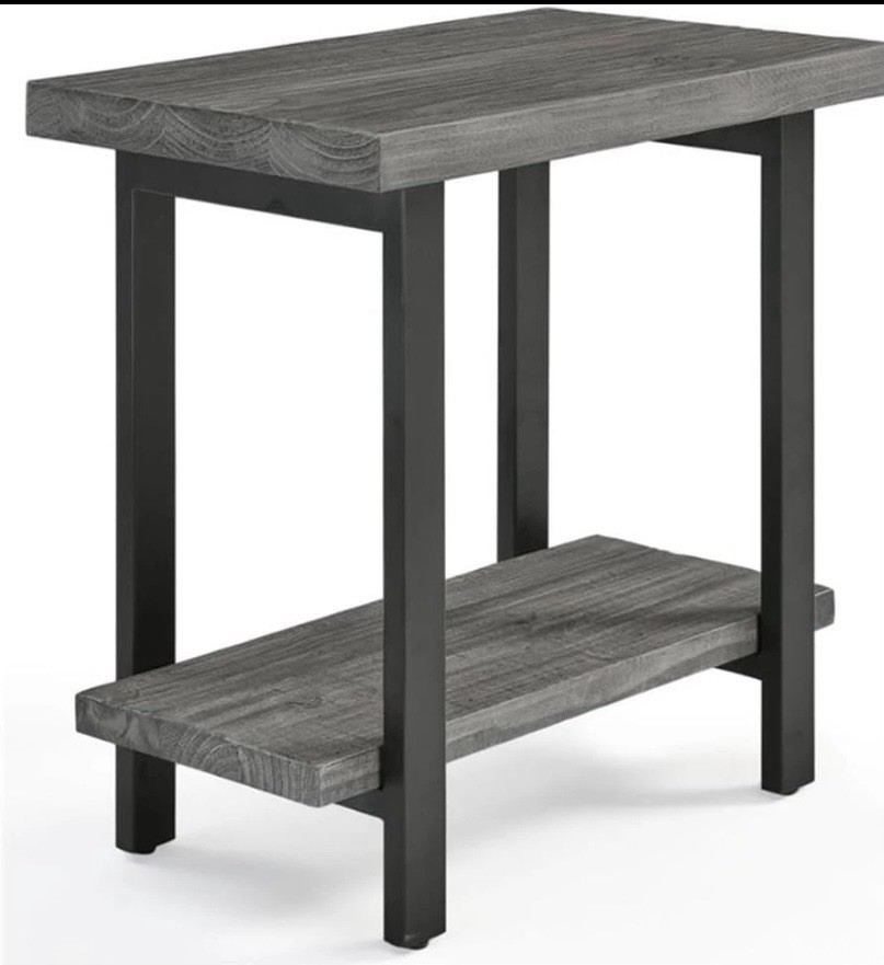 Pomona Metal and Wood 2-Tier End Table, Living Room Furniture, Rustic,Slate Gray