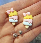 DETAILS ***NOTE*** These are handmade upon order so may take a day or two to ship. I can also make them into a necklace per request. This listing is for this adorable pair of handmade Popsicle / Ice Cream Bar stud earrings. The earrings measure approx. 7/8 inch high by 1/2 inch wide...they are very light weight. I attached them, with resin, to surgical steel (hypoallergenic) ear posts. I then finished them with steel backs / nuts. Please ask any questions that you may have! FEEDBACK POLICY DUE TO A LARGE NUMBER OF BUYERS THAT NEVER RETURN FEEDBACK...I WILL ONLY GIVE IT AFTER THE BUYER DOES. WHEN THE BUYER RECEIVES THEIR ITEM AND LEAVES ME POSITIVE FEEDBACK, I PROMISE TO RETURN THE FEEDBACK TO THEM. SOMETIMES IT TAKES ME A FEW DAYS BUT I WILL GET IT TO YOU!! IF THE BUYER IS NOT HAPPY WITH SOMETHING I ASK THEM TO PLEASE CONTACT ME BEFORE LEAVING FEEDBACK AND GIVE ME THE FAIR CHANCE TO MAKE THINGS RIGHT!! I HOPE THAT MY BUYERS WILL UNDERSTAND AND I THANK YOU!! QUESTIONS Ask any question that you may have. If you are not happy with this item when you receive it.... please contact us instead of leaving a negative feedback. We are always willing to work anything out. Our customers come first and we want them to be happy. We always promise excellent customer service. A happy customer comes back!! We stand 100% behind our products and 100% guarantee all of them!! PAYMENT DETAILS USA and OUTSIDE USA: We accept PAYPAL payments. We do combine shipping on multiple items IF all items are paid within one payment. PLEASE WAIT FOR COMBINED SHIPPING INVOICE!! If you cannot pay with Paypal immediate, please let us know right away. This will keep us from bothering you with tons of invoices because we will know when to expect your payment!! Items MUST be paid for within 4 days. If not, We will relist the item and file a Non-Paying Bidder complaint. We truly hope that all transactions can be smooth and pleasant!! PLEASE understand that shipping is more than just stamps or postage. We do combine shipping on multiple items IF all items are paid within one payment. PLEASE WAIT FOR COMBINED SHIPPING INVOICE!! I try and ship items out within 24-48 hours after payment is received. I am very careful to package items extremely well which requires alot of high quality packing materials. Please also understand that no matter how fast I ship...the postal service is out of our control. Thank you! FOR RETURNS If you feel that you are not happy with an item, please CONTACT ME before leaving feedback. If the item is broken...I require return and will refund your payment in full when the item gets back to me. If you just dont want the item and choose a REFUND please understand that I cannot issue it until I have the item back in my home and it is in the EXACT shape as when it left. You will need to return the item at your own expense and refunds do not include shipping unless the item is broken or not as described. This is the only way that I can recover some of my costs that I would otherwise lose. THANK YOU!!