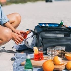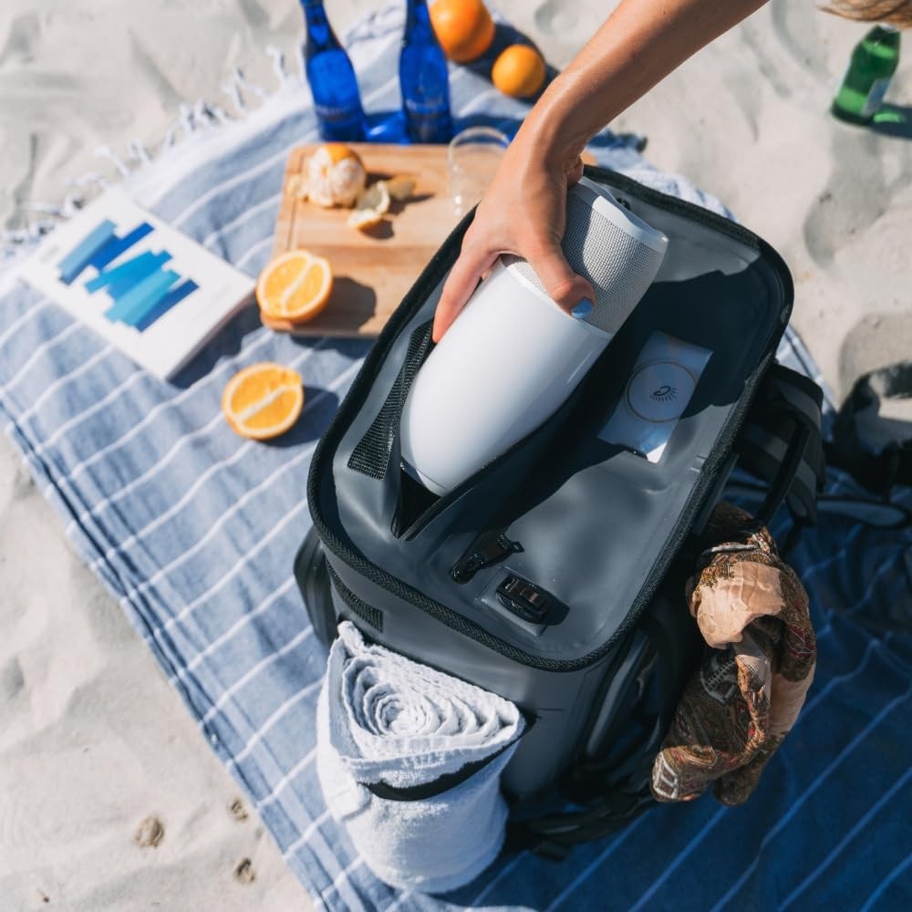Introducing the Backpack Cooler by Chapie, the ultimate companion for outdoor enthusiasts. This innovative cooler combines functionality and convenience, making it ideal for camping, fishing, picnics, hiking, and more. Designed for hands-free portability, the is worn like a backpack, featuring adjustable straps, a hip belt, and lumbar support for maximum comfort during long adventures. Its lightweight, ergonomic design ensures ease of carrying, even when fully loaded. The boasts a lockable, waterproof SafeZone compartment to secure your valuables, while its floating design makes it perfect for boating or poolside use. The Arctic Vault cooler compartment, crafted from RF welded TPU and closed-cell foam, is 100% waterproof and can hold up to 18 cans with ice or 24 cans without ice, ensuring your food and drinks stay cold for hours. Enhance your outdoor experience with the PureSound mesh-protected Bluetooth speaker pocket, allowing you to enjoy your favorite music anywhere without compromising sound quality. Stay powered up on the go with the built-in eZCharge 10,000mAh battery, featuring four built-in connectors and inductive wireless charging, ensuring your devices remain charged throughout your journey. Additional features include FrostMate insulated cup holders to prevent spills and keep drinks cold, as well as dedicated straps for holding towels or picnic linens, keeping them away from sand and dirt. Whether you're at the beach or embarking on a multi-day adventure, the Backpack Cooler keeps everything you need cold, safe, and within reach. Elevate your outdoor adventures with the Backpack Cooler—the perfect blend of durability, functionality, and style. Bluetooth speaker compartment allows you to enjoy music while keeping your speaker protected from the elements. Built-in 10,000mAh battery for charging devices on the go, ideal for long trips and outdoor adventures. Floating design ensures the cooler stays afloat, making it perfect for boating and poolside activities. Lockable waterproof compartment to keep your valuables safe and secure, even in wet conditions. Lightweight and ergonomic with adjustable straps for comfortable, hands-free carrying during hikes and beach days. Watertight zipper and advanced insulation keep your food and drinks cold for hours, even in hot weather. Spacious 18-can capacity with ice provides plenty of room for snacks and beverages, perfect for camping, picnics, and fishing trips.