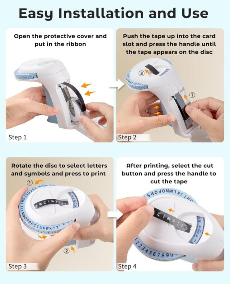 Emboss labels with ease using this portable blue embossing label maker machine. The set includes 1 roll of black embossing tape, allowing you to start labelling right away. Perfect for organizing your office, this machine is a must-have for any business or industrial setting. Get professional-looking labels quickly and efficiently with this handy office equipment.