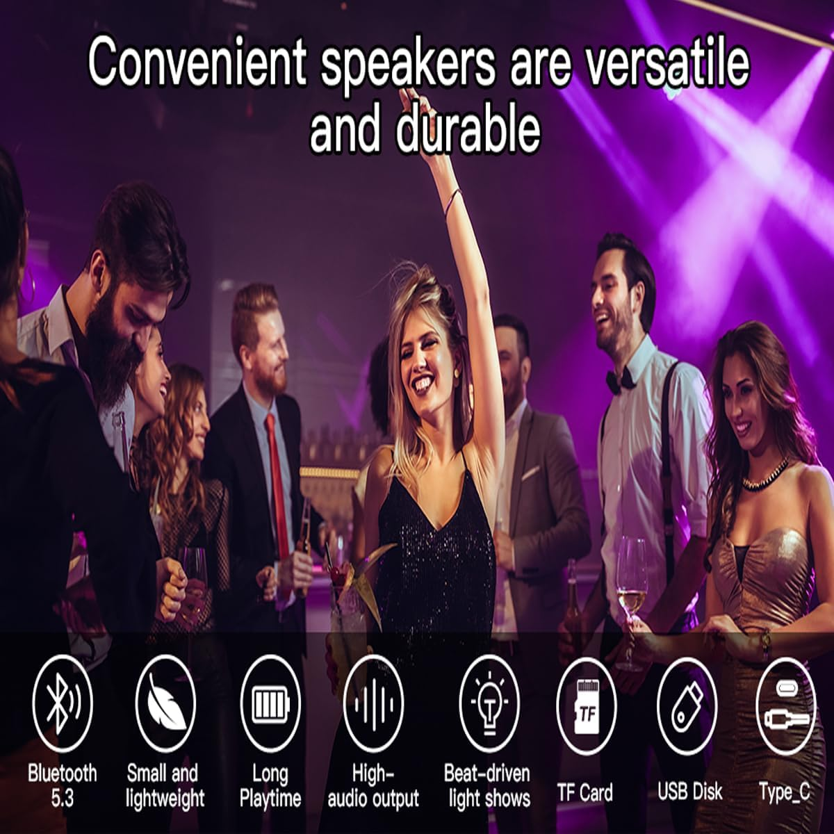 This speaker is a game-changer! The sound is crisp and powerful, with deep bass that fills the room. Bluetooth connects instantly, and the waterproof design makes it great for poolside parties. The LED lights add a fun vibe, and battery life lasts all day. Perfect for travel, outdoor trips, or just jamming at home—worth every penny!