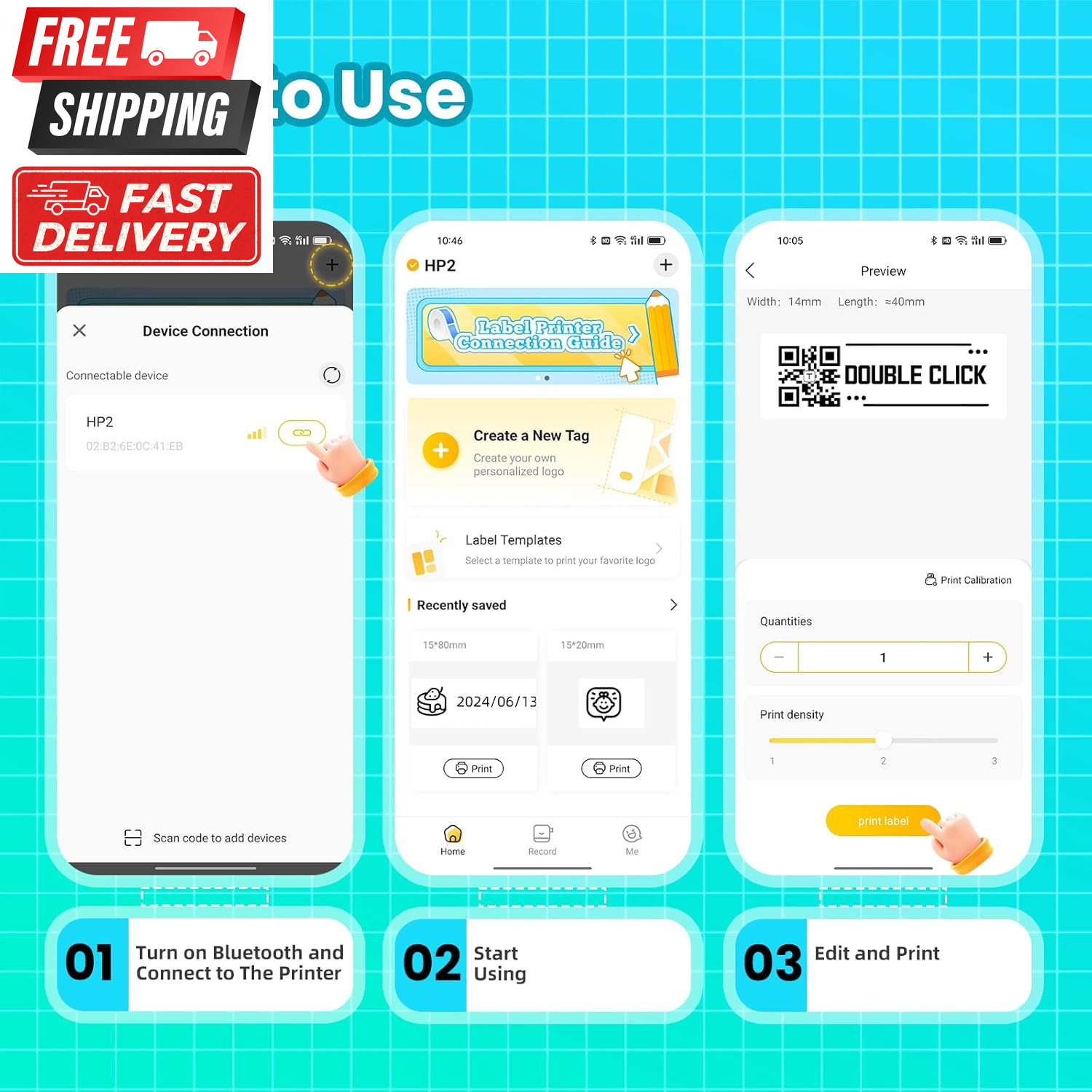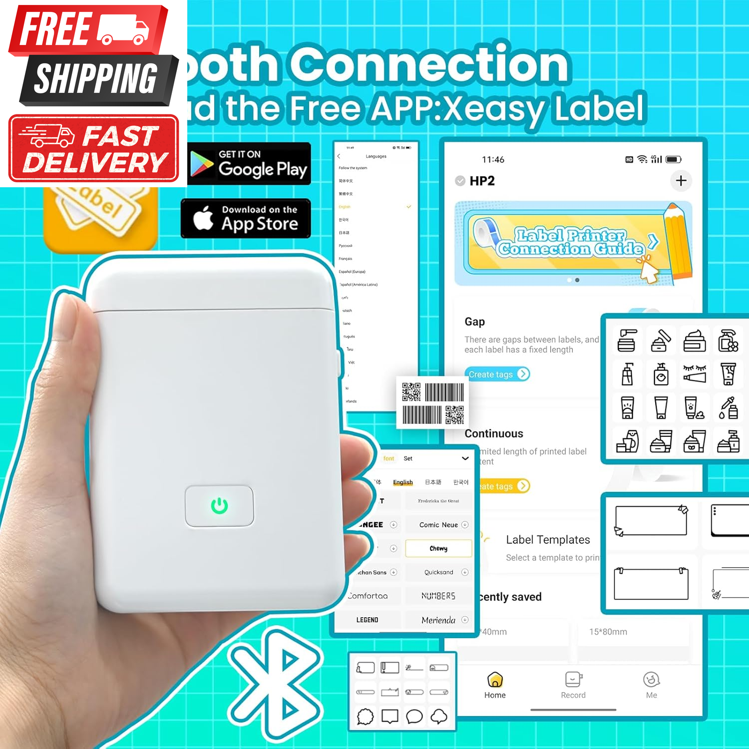 Store New Arrivals Add to Favorite View Feedback Contact Label Maker Machine with Tape, HP2 Portable Bluetooth Label Printer for Storage, Shipping, Barcode, Office, Home, Organizing Mini Sticker Label Maker with Multiple Templates (White) Description Printer Type Thermal Control Method App Warranty Type 1 year warranty B&W Pages per Minute 20 ppm Compatible Devices Smartphones Print media Labels Controller Type iOS Resolution 203 x 203 DPI Hardware Connectivity Bluetooth Duplex Manual Model Name HP2 Scanner Type Portable Additional Features Portable Printer Output Monochrome Maximum Print Speed (Color) 1 ppm Printer Output Type Monochrome Paper Size 14x40 Millimeters Item Weight 0.2 Kilograms Connectivity Technology Bluetooth Model HP2W Special Feature Portable Printing Technology Thermal Color Pages per Minute 1 ppm Color White Item Dimensions D x W x H 10.75"D x 7.6"W x 3"H Max Printspeed Monochrome 20 ppm Maximum Sheet Capacity 1 Wattage 2000 milliamp_hours Smarter and Smaller-Compared with the traditional label makers, this portable label maker is smaller and smarter. Compact and lovely design and you can take it into your pocket, and print labels and stickers anytime, anywhere. Bluetooth Connectivity & Easy to Use-This mini Bluetooth label printer prints stickers wirelessly. Just need to download the "XeasyLabel" APP, and then it is easy to create custom labels in your way. The app included more than 60 +Fonts, 12+ Languages, and 400+ Borders. And it supports iOS & Android. (NOTE: This label maker doesn't work with computers) Multiple Creative Templates & A Great Christmas Gift-This app of this stickers maker provides a variety of templates, containing texts, tables, symbols, logos, barcodes, QR codes, images, time, insert Excel, etc. Small label size from 0.5inch to 0.6inch. Easy to create various cute and useful label stickers from your phone. Labels are fixed in length, not support continuous label tape. And Package included 14x40mm white label paper. You can buy one for your friends or family as a Christmas gift, which makes Christmas interesting! Wide Application & Perfect for Thanksgiving Decorations- This label maker machines are used widely in organizing home supplies, classifying cosmetics items, price name jewelry tags, jar stickers, school and office files classification, storage, marking, etc. If you want to label some thanksgiving decorations, it is also a great choice! High-Quality Printing- Equipped with a Japan thermal print head and 203 DPI, this handheld label maker prints fast and clearly. And this label maker machine with tape print inkless, and it is rechargeable, with a 2000 MAH Battery Life, saving your time and money. Product Description Pre-Cut Label Tape Work with Vretti HP1 HP2 Labal Maker Machine Add to Cart Add to Cart Add to Cart Add to Cart Style Label Maker Label Maker Label Maker Pre-cut - 3 Rolls Pre-cut - 3 Rolls Stickiness / / Yes Yes Yes Work with Pre-cut Labels Pre-cut Labels Pre-cut Labels Work with Vretti HP1 HP2 Work with Vretti HP1 HP2 High Quality ✔ ✔ ✔ ✔ ✔ Easy Peel ✔ ✔ ✔ ✔ ✔ The video showcases the product in use. The video guides you through product setup. The video compares multiple products. The video shows the product being unpacked. ABOUT US We offer the best prices around on high quality products. Our E-store includes media such as books, movies, music and games while offering electronics, toys, sporting apparel, clothing, tools, general home, garden items and more. SHIPPING We are always working hard to ensure your package arrives as soon as possible. Please understand that some factors like weather, high postal traffic, and the performance of shipping companies are outside of our control. We offer free shipping to the lower 48 states and ship within 2 business days of payment, usually sooner. We do not accept P.O. Boxes. Please provide a physical address. For shipping outside of the continental USA, we only use eBay's Global Shipping Program.The item is shipped to KY and then sent to the rest of the world. International customers are responsible for all duties and taxes. Continue to check out in order to calculate costs for shipping the item to your country. Messages regarding eBay's Global Shipping Program MUST be directed at eBay EXCLUSIVELY. RETURNS We offer a 30-Day Return Policy on items which you are not completely satisfied with. You have the option for a full-refund or an exchange of the item. No returns are available on items shipped outside of the USA. PAYMENT We accept PayPal. CONTACT US This page content is yet to come Please ad us to your favorite seller and visit again later Thank You CUSTOMER SATISFACTION We try our very best to make sure every customer is completely satisfied. If there's a problem, message us! We're happy to help. WE ACCEPT