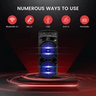 600 WATT POWER: This high powered wireless karaoke PA portable bluetooth speaker is equipped with dual 8" subwoofer and 1" tweeter with 600 watt peak power / 300W RMS at 2.6 ohm for full range stereo sound reproduction and impressive bass response.Waterproof : No COMPATIBLE WITH BLUETOOTH: The box type loud bluetooth speaker system is compatible with bluetooth for wireless audio streaming and works with devices like iPhone, android mobile phone, iPad, tablet, PC. Ideal for personal indoor home and outdoor use 3 INPUTS: Pyle bluetooth speaker karaoke PA system is equipped with a USB flash drive reader so it can serve as an MP3 player, a 3.5mm AUX input for connecting external devices & a 1/4” mic / guitar input. Equipped with FM radio with digital LED display FLASHING DJ LIGHTS: The bluetooth party speaker with lights features multi-color flashing disco LED party lights. True wireless stereo system adds life to any occasion, great for patio parties & night gatherings when colorful presence is noticeable RECHARGEABLE BATTERY: This Pyle PA speaker is great for karaoke, stage performances & crowd control. It is fully portable, thanks to its built-in rechargeable battery with level indicator lights, and extending carry handle so you can take it anywhere Features: - True Wireless Stereo System - Portable Speaker System - High-Powered PA Loud Speaker Style - Bluetooth Wireless Music Streaming Ability - Multi-Color Flashing LED Party Lights - Built-in Rechargeable Battery - FM Radio with Digital LED Display - Connect & Stream Audio from External Devices - Aux (3.5mm) Input Connector Jack - USB Flash Memory Reader - 6.5mm Microphone input - Battery Level LED Indicator Lights - Rugged & Durable Molded Cabinet Design - Convenient Extendable Carry Handle - For Indoor / Outdoor Use Bluetooth Wireless Streaming: - Built-in Bluetooth for Wireless Music Streaming - Simple & Hassle-Free Pairing - Works with All of Today’s Latest Devices - Smartphones, Tablets, Laptops, Computers, etc. - Bluetooth Version: 4.1 - Bluetooth Network Name: ‘PYLEUSA’ - Wireless Range: Up to 32’ ft. What's in the Box: - PA Speaker System - Remote Control - Power Adapter Technical Specs: - Material: Polypropylene (PP) - Max Power Output: 600 Watt Max - Sound System: 8’’ -inch Subwoofer x2 + 1” Tweeter - Impedance: 2.6 Ohm - USB Interface Type: 2.0 - Digital Audio File Support: MP3 - Maximum USB Flash Support: 32GB - Remote Control Battery Operated, 1 Piece Button Cell Battery CR-2025 (Included) - Battery Life: Up to 3 Hours (Charge Time: Approx. 4.5 Hours) - Rechargeable Battery: 3.7V, 2400mAh – 8.88 Wh - Power Supply: 120/240V, Switchable (5V/2A Power Adapter) - Dimensions (L x W x H): 9.1’’ x 8.7’’ x 23.2’’ -inches.
