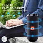 Product Features: Using advanced Bluetooth audio decoding chip, support all Bluetooth device connection; Support FM radio, you can directly search the radio station in the listening area; the tone is soft and clear and dynamic, each level is distinct; Direct reading of TF card and U disk; Bluetooth receiving distance can be as long as 10 meters. Support LINE IN audio input, provide you with computer speaker function. Can be directly connected to mobile/tablet/and TV Bluetooth pairing to play music; In the state of no Bluetooth connection, automatically shut down for half an hour. Specifications: Color: Black, Blue, Red, Camouflage Support: FM, TF card input, U disk input, 3.5mm audio input Bluetooth version: Bluetooth 5.0 Wireless transmission range: <10M/33Ft Audio noise ratio: ≥90db Battery capacity: 1200mAh Built-in voltage: 3.7V Normal volume playback: 3H~5H Speaker specifications: ¢45mm*2 Speaker power: 4Ω/5W*2 Frequency response: 120HZ-20KHZ Product size:68.8*68.8*160mm Stand-alone weight: 330g Charging voltage: 5V/500MA Extended memory: 32G(Not included) Material: ABS, mesh Waterproof level: IPX5 Package Included: 1 x Bluetooth audio 1 x Neutral specification 1 x USB data cable 1 x Audio cable Shipping Information: We provide Same Day FREE SHIPPING domestically within the U.S.A Support international delivery, buyers bear the transportation costs We reserve the right to charge additional shipping fee for reship items due to wrong shipping address provided during checkout. All orders before 5PM EST will ship out same day!, Monday - Friday Ships Same Day Today! Refund & Return Policy: We offer a 30 day return policy on all items purchased from us. Please contact us within 30 days after receipt of the item for a return. Do not ship the item back to us without contacting us first. Return shipping is responsibility of buyer. - We thank you so much for looking! If you have any questions or concerns, please do not hesitate to message us. Have a great day! Located in: Flushing, New York, 11354 United States