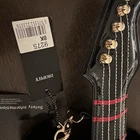 This beautiful Diophy guitar purse is perfect for any music lover. With its unique shape and black and red exterior color, it's sure to make a statement. The bag is made of faux leather and features studded strap accents, a zipper closure, and a detachable strap. It has a medium size, measuring 6 inches in width, 3 inches in depth, and 22 inches in height, with a handle drop of 6 inches and a strap drop of 12 inches. The bag includes an USB port, perfect for charging your devices, and comes with accessories such as a detachable strap. The lining is made of polyester and faux suede, with a red lining color that adds a pop of color to the bag. The bag is part of the Diophy Guitar Purse product line and needs 4 AA batteries to function. It has very minor details, all zippers work and ready to rock hard!
