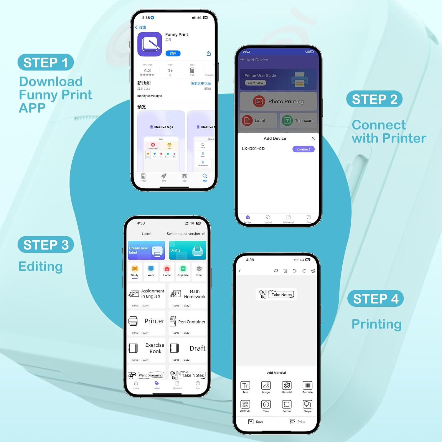 Label Maker - Portable Thermal Label Printer, Bluetooth Shipping Label Printer,Mini Sticker Printer, Storage and Packaging Note for Office Organization,School,Home with 2 Rolls Paper ---------------------------------------- Product Description : Easy to use: LOPEVI label printer is compatible with IOS and android phones via bluetooth connection. step 1: long press for 3 seconds to turn on the label printer. 2: double-click the button outside the printer to print a QR code, scan the QR code to download the "FUNNYPRINT" APP. Step 3: turn on bluetooth. Step 4: Install the paper roll. Step 5: connect the bluetooth in the APP. Step 6: select the template you need and start printing. Eco-Conscious, Ink-free thermal printer:embrace sustainability with our ink-free thermal printer that uses heat technology to produce crisp labels without the waste of ink cartridges. This eco-friendly choice is perfect for those looking to reduce their environmental footprint while maintaining high-quality printing. Powerful APP- the D1 label maker machine with tape comes with label templates and can set up your own templates.This label printer allows you to customize and format labels, supporting various features such as QR codes, barcode labels, tables, materials, time, figures, text, icons. This label maker machine with tape APP included more than 90 +fonts, 18+ languages, 10 video tutorials. Compact and compatible label maker: This stylish label maker can easily create paper sizes from 3-4mm to 50mm width, and can adapt to a variety of width papers. As long as the width is within 50, it can be installed on the printer and is suitable. Compared with other printers, our label printer is very adaptable. Widely use- LOPEVI label maker machine with tape has a wide range of applications and creativity. Enjoy labels anywhere with D1 label printer like small businesses: clothing, crafts, retail, jewelry, etc. label address, barcode, transportation, price, date, ingredients, and product labeling. Ideal for a variety of labeling needs, including christmas, halloween, thanksgiving, father's day, mother's day. This label maker machine with tape bringing great convenience to our work and life. Item Details: 2.0 "h x 5.0 "h x 4.0 "h. Weight: 10.8 oz Printer Type Thermal Control Method App B&W Pages per Minute 40 ppm Compatible Devices Smartphones Ink Color Sky Blue Print media Labels Brand Name lopevi Brand lopevi Model Name D1 Additional Features Portable, Lightweight Specific Uses For Product Label printing, Small business applications Maximum Print Speed (Color) 40 ppm Printer Output Type Monochrome Paper Size 3, 5 inches Max Printspeed Monochrome 40 ppm Is Electric Yes Model D1 Special Feature Portable, Lightweight Printing Technology Thermal Color Pages per Minute 40 ppm Additional Printer Functions Print Only Color Sky Blue Item Dimensions D x W x H 5"D x 2"W x 4"H Connectivity Technology Bluetooth Printer Output Monochrome Built-In Media 50 mm width continuous sticker length 350 cm * 1, USB Charging Cable * 1, 15*50 mm specification stickers 140 pieces * 1, Mini thermal label printer user manual * 1, Portable Bluetooth label maker * 1 Media Size Maximum 3 x 5 inch Initial Page Print Time 5 seconds Product Dimensions 5"D x 2"W x 4"H Size Printer