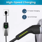 【2 In 1 Lightning EV Charger 】 Lightning Fast Charging Level 1 & Level 2 EV Charger with adjustable 16/32amp. NEMA 14-50 plug: charge Level 2 vehicle, up to 32Amp 240V, 7 KW Max., 6x faster than a normal 8A level 1 charger. NEMA 5-15 Adaptor: charge Level 1 vehicle, up to 16Amp 110V, 1.7 KW Max., Ideal for older and newer model electric cars. 【6X Faster Charging】 Level 2 EV Charger with NEMA 14-50 plug fill up your car at an average of 6 times faster than a standard charger, delivering 24 miles in only 1 hour at 240V charge. 【LED Screen】 The LCD screen display every detail that you need during the charging including the real-time current and voltage, charging amount and time. 【Portability & Easy Operation】 Charging your EV in anywhere and at any Time. The Portable EV Charger can be carried with your car. Compact controller size for flexible installation and usability, and 26 feet of charging cable can fulfill your demands of charging in driveways and garages. 【Safer & Reliable Charger】 Safety is a top priority, which is why this charger is equipped with a LED indicator on the control box. This indicator displays the charging status of your EV, alerting you immediately to any potential issues. Additionally, the charger incorporates triple protection functions, including Leakag Protection, Overcharge Protection, and Under Voltage Protection, ensuring a safe and reliable charging experience.