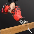 Description: 1. Wireless lithium battery reciprocating saw work efficiency is greatly improved, lithium battery life, no refueling, light and portable. Metal cutting, wood cutting, outdoor pruning, plastic cutting, bone cutting. 2. Large capacity lithium battery, fast charging, lasting endurance, enough power to provide lasting power. Four-heavy intelligence, protection function, over current protection, over pressure protection, over temperature protection, charge and discharge protection. 3. All-copper wire motor, high load is not easy to burn the machine, stable power output, strong power, strong power, stable and durable. 4. No need for tools, quick installation of the clip, fast saw blade installation clip, convenient installation does not drop. 5. Seiko saw blade, cutting more efficient, fine steel forging, saw cutting process is not easy to pull teeth, sharp cutting, not easy to break. LED lighting, not afraid of the dark working environment. 6. Step-less variable speed switch, let go that is, the faster the pressure, the car automatic gear principle, switch control the cutting speed of the machine. Specifications: 1. Battery capacity: 3.0 AH 2. Speed regulation mode: infinite variable speed 3. Product rotation speed: 0-3,000 r/min 4. Reciprocating travel trip: 21mm Package 1 Included: 1 set reciprocating saw 1*battery ; 1*charger ; Package 2 Included: 1 SET reciprocating saw 2*battery ; 1*charger