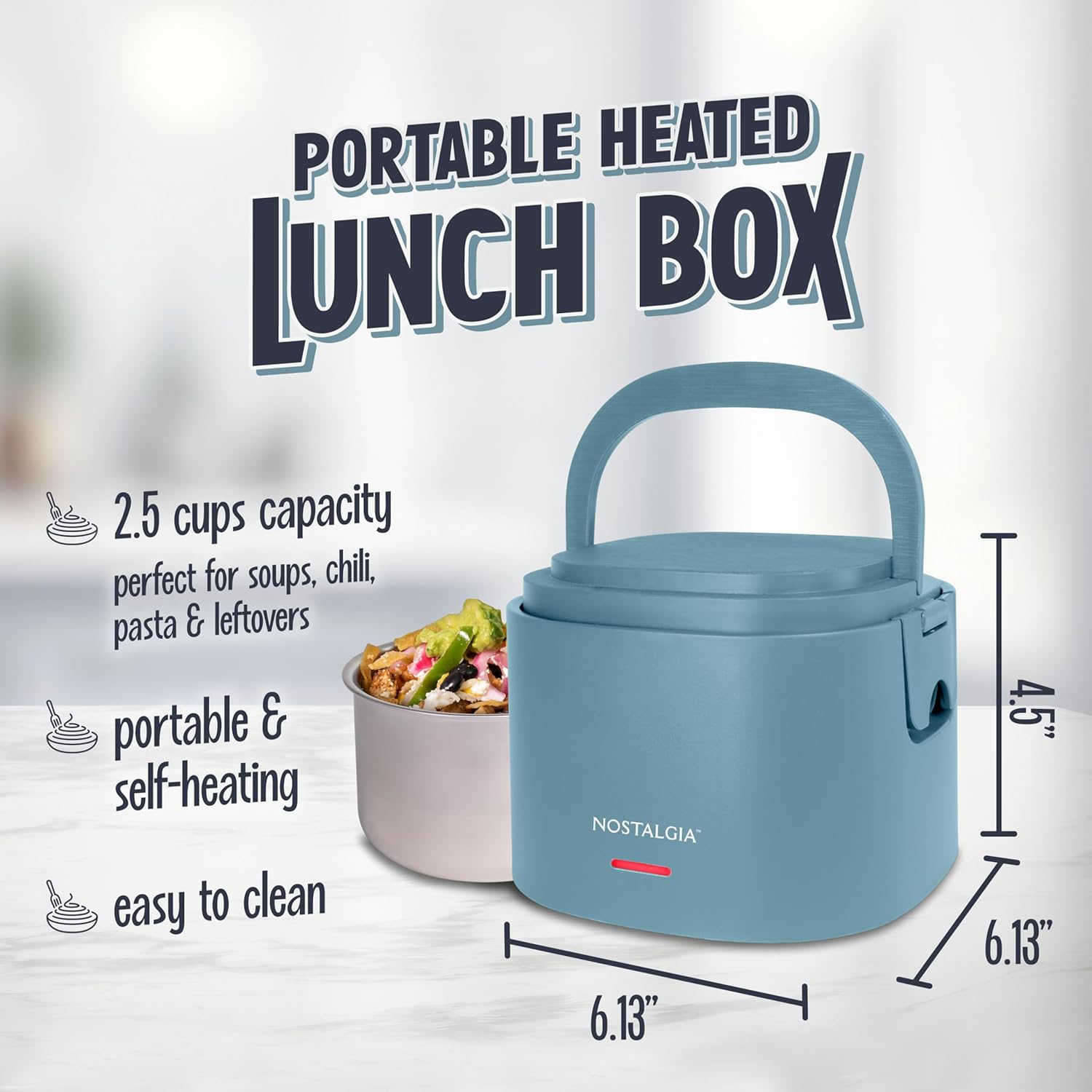 Store New Arrivals Add to Favorite View Feedback Contact Portable Heated Lunch Box – 2.5-Cup Stainless Steel Food Warmer – Detachable Cord, Leak-Proof Lid, Carry Handle – Portable for Work & Travel – Ocean Blue Description Capacity 2.5 Cups Color Ocean Blue Pattern Solid Material Stainless Steel Item Weight 0.92 Kilograms Age Range (Description) Adult Recommended Uses For Product Office, Picnic, Travel Special Feature Dishwasher Safe Product Care Instructions Dishwasher Safe Size 2.5 Cup SELF-HEATING LUNCHBOX: Upgrade your meal prep with Nostalgia's self heating lunch box. Plug in your meal a few hours before eating and skip the hassle of finding a microwave PORTABILITY: Built for portability, with a compact size and foldable handle, it's perfect for packing soup, pasta, stir-fry, and more 20-OUNCE CAPACITY: Fill the stainless steel container up to 20 ounces (2.5 cups) of your favorite perfectly portioned meals or light snacks LEAK-PROOF DESIGN: Dual locking lids prevent spills and leaks while keeping your meal an even hot temperature EFFORTLESS CLEANING: The removable stainless steel interior is easy to clean and is dishwasher safe providing long-lasting use GREAT FOR GIFTING: Provide a thoughtful gift that gives convenient and tasty meals for friends and family to bring to work, travelling, and more. Intended for adult use only. ABOUT US We offer the best prices around on high quality products. Our E-store includes media such as books, movies, music and games while offering electronics, toys, sporting apparel, clothing, tools, general home, garden items and more. SHIPPING We are always working hard to ensure your package arrives as soon as possible. Please understand that some factors like weather, high postal traffic, and the performance of shipping companies are outside of our control. We offer free shipping to the lower 48 states and ship within 2 business days of payment, usually sooner. We do not accept P.O. Boxes. Please provide a physical address. For shipping outside of the continental USA, we only use eBay's Global Shipping Program.The item is shipped to KY and then sent to the rest of the world. International customers are responsible for all duties and taxes. Continue to check out in order to calculate costs for shipping the item to your country. Messages regarding eBay's Global Shipping Program MUST be directed at eBay EXCLUSIVELY. RETURNS We offer a 30-Day Return Policy on items which you are not completely satisfied with. You have the option for a full-refund or an exchange of the item. No returns are available on items shipped outside of the USA. PAYMENT We accept PayPal. CONTACT US This page content is yet to come Please ad us to your favorite seller and visit again later Thank You CUSTOMER SATISFACTION We try our very best to make sure every customer is completely satisfied. If there's a problem, message us! We're happy to help. WE ACCEPT Copyright © 2021 AutoDS. | All Rights Reserved