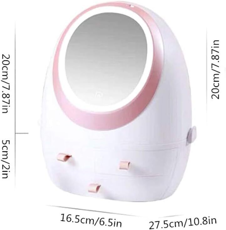 This makeup storage box is a game-changer! The sleek white design with a built-in LED mirror looks elegant on any countertop. I love how spacious it is—perfect for organizing all my cosmetics and skincare products. The oval shape is unique and fits nicely in drawers too. The LED mirror provides bright, even lighting for flawless makeup application. Super portable, great quality, and keeps my vanity clutter-free. Highly recommend for anyone who loves staying organized in style!