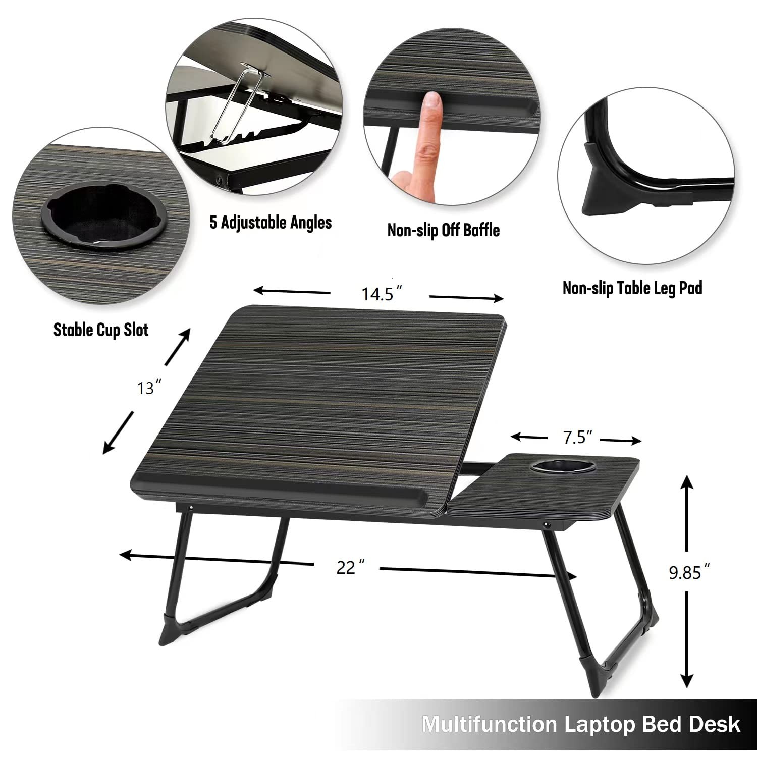 Product Description: Small Laptop Desk is the upgrade of our previous bed table. First,The most shining point of this lap desk for laptop is the separation desktop design. The left part of the desktop can adjust the angle to allow us to have better vision to protect our tibia vertebra.The right side of the desktop is level, so that we can easily operate the mouse. This bed table is Multi-Use. it could be used as laptop workstation for bed and couch , snacks tray, kids lap homework/bed table, reading and writing stand, and even portable mini picnic stand. When fold the desktop legs, adjust the desktop angle, and place it on the desktop, which could be used as to laptop stand for desk. laptop stand for desk is Easy to use and portable.No assembly required. Just pull out the foldable legs and adjust the desktop angle. When not in use, fold and retreat, place it under the bed or the sofa,save space, you can put it in the back of the car when you go out, which is very convenient. Product dimension.Folded Dimensions: 22" x 13" x 1 5/8" ;Expanded height:22" x 13" x 9.85 ". At last,If you don't feel well with it, just send it back,Shopping without worry. lap desk,bed desk for laptop and writing 【Practicality】This lap desk for laptop is the separation desktop design. The left of bed desk can adjust the angle to allow us to have better vision to protect our tibia vertebra.The right of bed table is level,we can easily operate the mouse. 【Multi-Use】This laptop desk could be used as laptop workstation for bed and couch , snacks tray, lap homework/bed table, reading and writing stand, and even portable mini picnic stand. When fold the desktop legs, adjust the desktop angle, and place it on the desktop, which could be used as to laptop stand for desk 【Easy to use and portable】No assembly required. Just pull out the foldable legs and adjust the desktop angle. When not in use, fold and retreat, save space, you can put it in the back of the car when you go out, which is very convenient 【Product dimension】Folded Dimensions: 22" x 13" x 1 5/8" ;Expanded height:22" x 13" x 9.85 " 【RISK-FREE】: If you don't feel well with it, just send it back,Shopping without worry