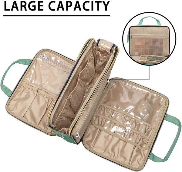 KABAQOO TRAVEL TOILETRY BAG, PORTABLE MAKEUP COSMETIC BAG, WATER-RESISTANT MAKEUP ORGANIZER FOR FULL SIZED TOILETRIES, MAKEUP BRUSHES, TRAVEL ACCESSORIES, Gray Item is Gray, first picture, other pictures are to show features and functionality. DESCRIPTION LARGE CAPACITY - 12.2 x 9.1 x 4 inches. The large toiletry bag features multiple pockets, keep your skin care products, cosmetics, lotions, shampoos, conditioners, toothbrushes or any toiletries organized and well protected. SPECIAL DESIGN - The double side full open design adds stability to the makeup bag, keeping your cosmetic bottles upright in the middle compartment. The both sides are designed for storing makeup brushes, toothpaste and eyeshadow palette etc. The PVC cover with velcro protects your brushes from getting dirty, and at the same time protects the organization from powder dust. EASY TO ACCESS - Our toiletry bag features a unique double zipper design for easy access to the contents inside. Simply pull up the attached zipper head for full exposure WATERPROOF DURABLE MATERIAL - KABAQOO Travel Toiletries Organizer is made of waterproof and anti-friction oxford fabric, and the inner PVC is great for protecting the bag from being wet. Non-fraying stitching and strong zippers make the toiletry bag sturdy and durable, and it can support heavy travel accessories kit and not easy to break! OCCASIONS - Easy to carry and can be used as a toiletry bag or makeup bag for daily use. Perfect for overnight stays, long trips, gym showers and outdoor activities. Guarantee : I guarantee that your package will be my #1 Priority and will be shipped as early as I possibly can(usually no later than early the next day, same day if ordered soon enough). That I inspect every Item, I want you to buy from me with confidence. Mistakes can be made so if you are not satisfied 100%, ship it back for to me free. Thanks from “Just a Small Town Boy.