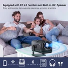 Native 1080P/4K Decoding:The Movie Projector powered by advanced LED technology and a uniform illumination method, guarantees exceptional image quality, delivering a dynamic and color-vibrant effect, minimizing the impact of blue and direct light. Perfect for safeguarding children's eye health 180° Rotatable Projector: Turn any surface into a cinematic canvas! Our HY320 movie projector seamlessly rotates to project onto walls, ceilings, or even the floor. Enjoy an immersive viewing experience from any angle within your home Auto Keystone Correction: HY320 smart projector uses automatic keystone and manual focus technology to give you the perfect picture; do the work in seconds. Otherwise with a max 150” screen display, creating an unforgettable movie night or gaming session BT 5.0 and Speaker: With a built-in 1*3W Hi Fi speaker, immerse yourself in excellent audio. Connect headphones, speakers, and other devices via Bluetooth to enjoy cinema-level surround sound at home. (Not support connect smartphone, laptop's bluetooth) Good Performance & Portable Design: Equipped with the advanced H713 quad-core chip and Mali-G31 GPU, video projector ensures smooth operation and improved compatibility. Owning this projector is like having the functionality of a smart TV or a regular TV with a tv box. Its compact size makes it easy to carry, fitting conveniently into your bag