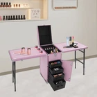Portable Nail Table Desk, Foldable Rolling Manicure Table, 2 Desktop Case Description Our portable nail table desk will provide unparalleled convenience and elegance for your beauty or nail art. This well-designed tabletop not only demonstrates professionalism but also blends artistic beauty, making it ideal for you to show off your exquisite skills. Whether it's delicate makeup or a delicate manicure, it offers the ultimate experience. Key Features Sturdy and Durable: It is made of high-class ABS and aluminum alloy , making it durable, waterproof, anti-scratch , and wear-resistant , ensuring its long service life. Large Capacity: The top large compartment and many small compartments can be convenient for you to put nail polish, lipstick, etc., the mesh pocket on the cover can hold fashion magazines, while the bottom four drawers with different heights have a large-capacity space for orderly sorting and storing eye shadows, lipstick, curling irons, hair dryers, and other makeup items. Thoughtful Design: An adjustable pull rod suits your height with less sway and the four universal wheels (all with brakes) on the bottom help you move and fix this product smoothly and conveniently. In addition, the cosmetic case has 2 foldable tabletops on both sides, providing space for 4 people to get their nails done. You can also place more items on the desktop for easy access. The tabletop is 27.17in above the ground, ensuring more space for leg placement . High Load Capacity: The rectangular construction and sturdy material ensure that it can hold items about 220.46 lbs , so you can rest assured that you'll be able to keep your daily make-up inside! High Safety: The latches, an upper storage lock with two keys, and two coded lock s allow you to lock and unlock the product for added security when you are out. Space-saving: The collapsible design and compact structure make it great for outdoor use or in-store use without standing in too much space. Ready to Use: The one-piece construction allows you to use it as soon as you receive it, which is very time-saving and convenient! Ideal Gift: Its large capacity and stylish look make it an excellent gift for various holidays to your friends and family. Details Ergonomic Handles: The top ergonomic handle provides a comfortable grip and can reduce hand pressure while allowing for convenient carrying of the case. Also, the handles on the drawers make it easy for you to open and close the drawers. Aluminum Alloy Corners: The rounded a luminum alloy corners make it impact-resistant and can better protect the case. Application It's ideal for professional make-up artists, hair stylists, beauticians, nail tech students, or anyone who owns a lot of make-up. It can be used to store cosmetics and beauty tools, such as lipstick, hair wax, eye shadow, curling iron, mascara, eyebrow pencil, nail polish, and comb. Specification Color: Pink Material: Aluminum Alloy and ABS Style: Modern Shape: Rectangular Assembly Required: No Mounting Type: Floorstanding Total Load Capacity: About 100kg/220.46 lbs Number of Universal Wheels: 4(All with Brakes) Top Cover Size: 27*38cm/10.63*14.96in Case Size : 27*38*77cm/10.63*14.96*30.31in Nail Table Desk Size(Each Side): 56*38*69cm/22.05*14.96*27.17in Package Size: 90*50*48cm/35.43*19.69*18.9in Gross Weight: 20kg/44.09 lbs Net Weight: 19kg/41.89 lbs Package Included 1* Portable Nail Table Desk 2* Keys Notes Please note that cosmetics are not included. Please use this product within its carrying capacity. The service wear of the case is a normal phenomenon. In the process of daily use, please try to avoid excessive impact and drop to extend the lifespan of the product. Please clear the wheels in time to maintain smooth movement. Please allow the slight color difference caused by the shooting light and 1-3cm error due to manual measurement, and make sure you do not mind before ordering. Payment Delivery details Terms of sales About us Contact us Payment We accept ebay payment 。 Fees such as import duties, taxes are not included in the item price or shipping costs. These charges are the buyer's responsibility. Delivery details Shipping: 2-9 working days to: USA Terms of sales We maintain high standards of excellence and strive for hundred percent customer satisfaction. Feedback is very important to us. We hope that you contact us immediately before you give neutral or negative feedback, so that we can address your concerns. It is impossible to address issues if we do not know about them! About us Your satis faction is our ultimate goal. We work hard to earn your trust and future business. Our certified technicians have tested each item before shipping. The unit comes with 1 year limited warranty on all manufacturing defects. a) If you receive a defective item, you may return it or ask for a discount. Please contact us within 14 days after you receive the package. b) What you returned must be intact and in its original packaging as re? u. Customer is responsible for shipping costs of the returned item. c) We will cover the cost of shipping back t with the shipping rate indicated in the registration page. We will send you a new unit or refund the full payment you paid. Thank you. Contact us Business Hour Business Hour: Monday To Friday: 8:30 AM to 5:00 PM (Beijing China time) Due to time zones, our reply to your questions may not be immediately. But within above working time, we will reply your email within 24 hours. If it's non-workdays, please kindly be patient and wait till Monday. Please contact us with ebay message. Please feel free to contact us if you have any questions. Monday To Friday: 8:30 AM to 5:00 PM (Beijing China time) Due to time zones, our reply to your questions may not be immediately. But within above working time, we will reply your email within 24 hours. If it's non-workdays, please kindly be patient and wait till Monday. Please contact us with ebay message. Please feel free to contact us if you have any questions. Mat