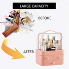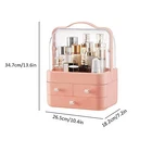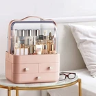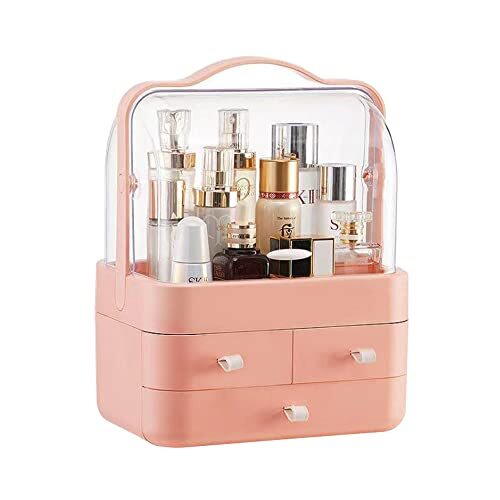 Love this makeup organizer! It’s sleek, holds everything neatly, and the dustproof lid keeps my cosmetics clean. The handle makes it easy to move around, and the pink color is so cute. Perfect for my bathroom counter—keeps things tidy while looking stylish. Super happy with this purchase!