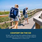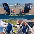 Simple Setup: One-step portable chair setup is fast, safe, and easy; Our beach chairs with backpack straps also allow for hands-free transportation SUN. SURF. SAVOR. Unwind oceanside in the Backpack Beach Chair, an adult chair from . Have it all with this reclining chair — stash essentials in the large back pocket and catch some rays with your toes in the sand. RELAX IN COMFORT. Recline all the way back, sit up straight or somewhere in between — it's up to you thanks to the adjustable, 4-position reclining backrest.The comfortable head pillow lets you rest your head back at every angle. FRONT ROW SEAT. Perfect for waterside activities or backyard lawn barbecues, the Backpack Beach Chair is ready for anything. With a built-in beverage holder, phone pocket and solid armrests, you can enjoy more time outside with family and friends. PORTABLE COMFORT. Rest easy thanks to a mesh backrest for continuous airflow and a cushioned head pillow for extra support. Store your towel, sunscreen and snacks in the oversized pouch, while the adjustable backpack straps keep your hands free. TECH SPECS. 250 lbs Weight Capacity; Open: 26" Depth x 23.6" Width x 30.9" Height (Seat Height: 11"); Folded: 3.7" Depth x 23.6" Width x 27.6" Height. Chair Weight: 8.6 lbs