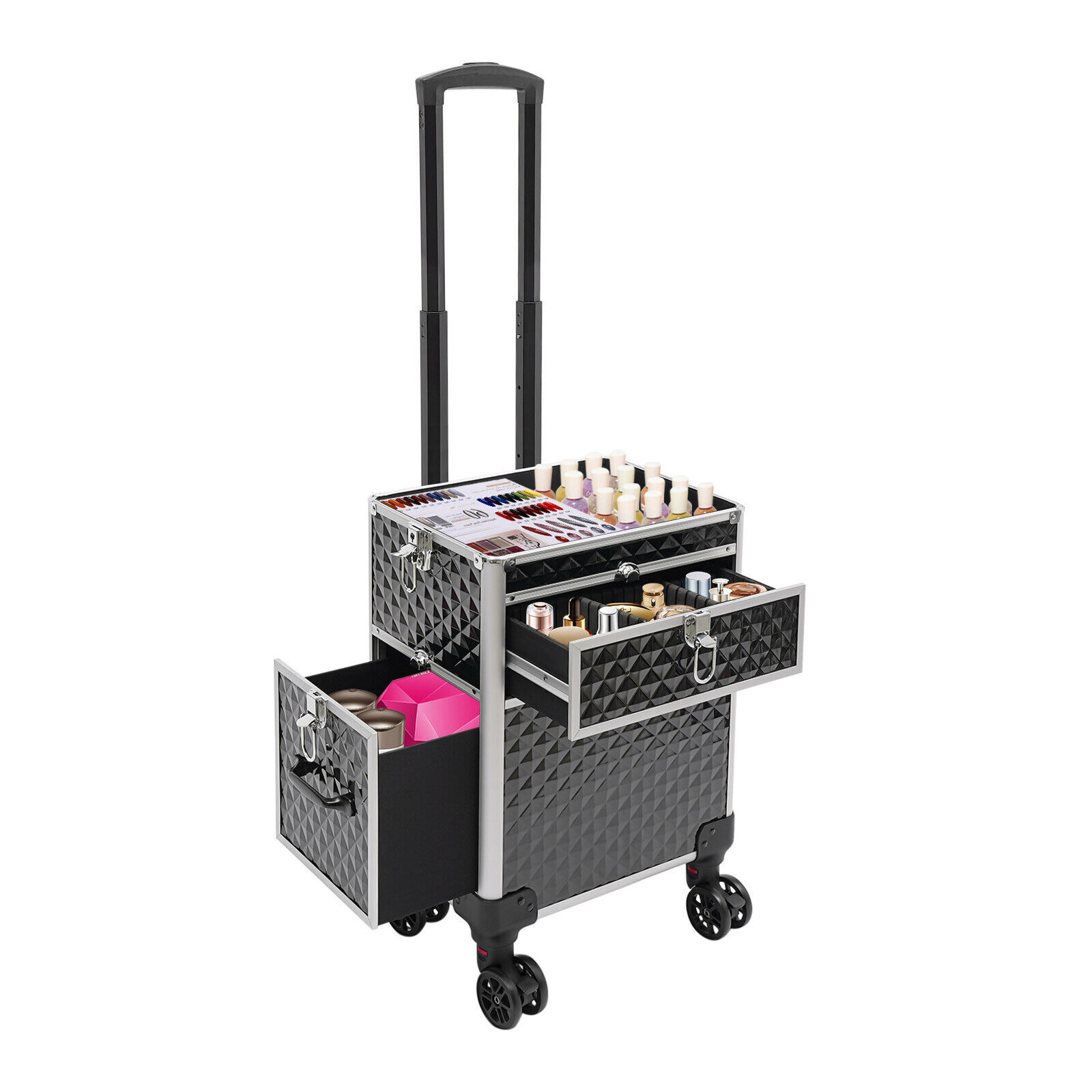 This rolling makeup case is a total game-changer for my beauty routine! It holds all my cosmetics and tools so neatly with its smart compartments, and the smooth wheels make transport effortless. Perfect for pros or anyone who loves organization on the go. Absolutely love it!