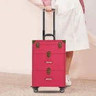 Specification Target Audience: Unisex Adult Caster Type: Swivel Mounting Type: Free Standing Material: PU, PVC, Zinc Alloy, Aluminum Alloy Color: rose Shape: Rectangular Number of Tiers: 3 Number of Wheels: 4 Max. Load-bearing Capacity: 40kg/88.2lbs Number of Keys: 2 Lid Size: 36*23cm/14.2*9inch Wheel Height: 7cm/2.8inch Telescopic Rod Length (Min.): 38cm/14.9inch Telescopic Rod Length (Max.): 86cm/33.8inch Second Tier Inside Size: 30*19.5*13.5cm/11.8*7.7*5.3inch Each Compartment of Top Tier Size(L*W): 3.5*3.5cm/1.4*1.4inch Each Compartment of Third Tier Size: 14.5*19*13.5cm/5.7*7.5*5.3inch Top Tier Height: 9cm/3.5inch Second&Third Tier Height: 17cm/6.7inch Overall Case Body Size: 36*23*49cm/14.2*9*19.3inch Overall Product Size: 36*23*101cm/14.2*9*39.76inch Rolling Makeup Train Case Cosmetic Trolley Makeup Storage Organizer Luggage Box Description If you are troubled by storing all your hairdressing tools in order and finding them easily, our makeup train case can be of great help to you. Featuring high durability, attractive appearance, large capacity, universal wheels, humanized handles, a telescopic rod, and more, this product is easy to carry outside while keeping practical and beautiful. It is an ideal choice for young manicurists, make-up artists, and hairdressers/cosmetics lovers to store various cosmetics. Key Features Beautiful Appearance: Elegant rose color combined with a rectangular frame, smooth lines, and delicate lychee texture gives this product a stylish and beautiful look. High-quality bronze hardware and exquisite stitching also add to its appearance. Durable and Sturdy: This product is constructed with premium PU, PVC, and reinforced corners, aluminum alloy rod, zinc alloy-wrapped edge , which is waterproof, wear-resistant , and has a long service life. Categorized Storage : The 3-tier and compartment designs, cubicles, and a large clear pocket on the lid give this case a large capacity to hold your daily cosmetics and makeup tools in a categorized way, allowing you to quickly find what you want. And the dividers are removable for organizing different sized bottles. Easy to Move&Carry: 4 universal wheels (2 of which are lockable) ensure that the case can be moved smoothly and silently in all directions and allow for safe fixation to handle different road conditions. The telescopic handle and top handle give it high portability. Easy to Clean: The lid and drawer designs can prevent dust from entering, along with the waterproof surface, making it easy to clean. You just need to wipe off the dirt with a wet cloth. High Safety: The 4 latch locks and waterproof surface provide maximum protection and security for your toiletries, giving you peace of mind while traveling. Excellent Load-bearing Capacity: The sturdy construction and the zinc alloy frame provide the product with an excellent weight-bearing capacity of 88.2 lbs. You can place all kinds of hairdressing and beauty tools in it with confidence. Protective Packaging: To prevent the product from being damaged and bumped during transportation, we pack it with pearl cotton for maximum protection of your products. After-sales Service : We aim to provide quality products and services. If you have any problems, please feel free to contact us, and we will reply and solv e the problem for you as soon as possible. Details Back Buckles: The back of the luggage has two hardware eight-nail back buckles to make the case more stable and to ensure that it remains as good as new when repeatedly opened and closed. User-friendly Drawer Handle: The 2 comfortable drawer handles of the second and third tiers allow for convenient closing/opening of the drawers, thus ensuring easy access to the inside items. Application It is good for manicurists, makeup artists, both beginner and professional, freelance makeup artists, wedding makeup artists, celebrity makeup artist, and cosmetic trainees. Structure Overview The inside of the lid has a makeup bag where you can keep the things you use regularly for quick and easy access. The first tier can be used for nail varnish or other small items. The second tier is suitable for larger items such as hair dryers, curling wands, nail art machines, and more. The third tier has two compartments for medium items, such as cosmetics, hairspray spray. Specification Target Audience: Unisex Adult Caster Type: Swivel Mounting Type: Free Standing Material: PU, PVC, Zinc Alloy, Aluminum Alloy Color: rose Shape: Rectangular Number of Tiers: 3 Number of Wheels: 4 Max. Load-bearing Capacity: 40kg/88.2lbs Number of Keys: 2 Lid Size: 36*23cm/14.2*9inch Wheel Height: 7cm/2.8inch Telescopic Rod Length (Min.): 38cm/14.9inch Telescopic Rod Length (Max.): 86cm/33.8inch Second Tier Inside Size: 30*19.5*13.5cm/11.8*7.7*5.3inch Each Compartment of Top Tier Size(L*W): 3.5*3.5cm/1.4*1.4inch Each Compartment of Third Tier Size: 14.5*19*13.5cm/5.7*7.5*5.3inch Top Tier Height: 9cm/3.5inch Second&Third Tier Height: 17cm/6.7inch Overall Case Body Size: 36*23*49cm/14.2*9*19.3inch Overall Product Size: 36*23*101cm/14.2*9*39.76inch Package Size: 63*32*41cm/ 24.8*12.6*16.14inch Gross Weight: 10kg/22.04 lbs Product Weight: 9kg/19.84 lbs Package Included 1*Makeup Train Case 2*Keys Notes Please note that cosmetics or makeup tools are not included. This product is a carry case only. This product includes two keys. Please allow the slight color difference caused by the shooting light and 1-3 cm error due to manual measurement, and make sure you do not mind before ordering. Payment Delivery details Terms of sales About us Contact us Payment We accept ebay payment 。 Fees such as import duties, taxes are not included in the item price or shipping costs. These charges are the buyer's responsibility. Delivery details Shipping: 2-9 working days to: USA Terms of sales We maintain high standards of excellence and strive for hundred percent customer satisfaction. Feedback is very important to us. We hope that you contact us immediately before you g