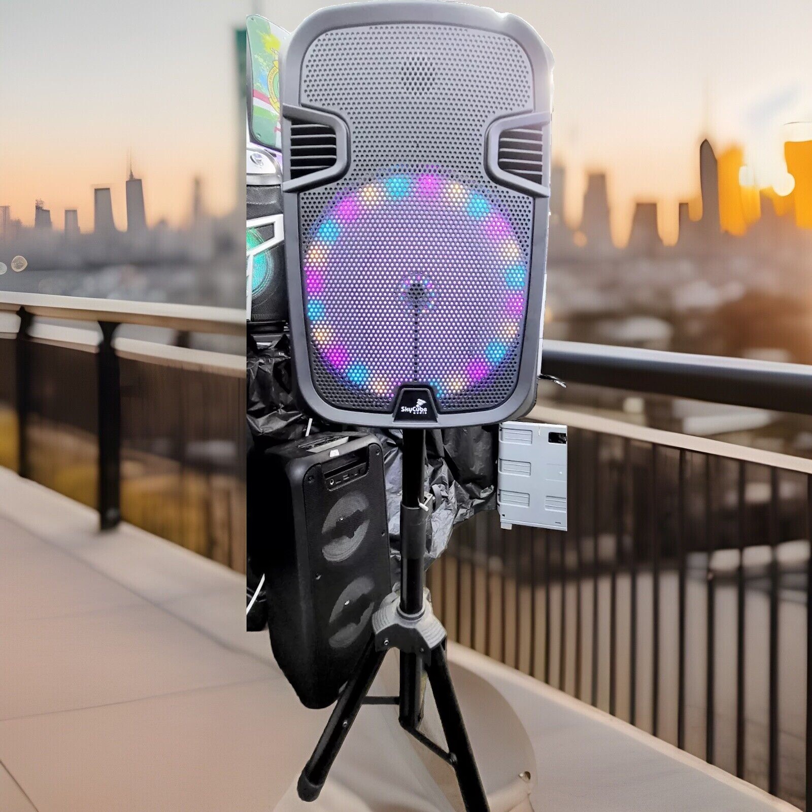 bluetooth speaker portable SkyCube 12” 1 Tweeter 12500 Watts P.M.P.O with (stand)Mic Remote. Loud sound Condition is New. Shipped with Standard Shipping.
