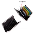 RFID DESIGN: RFID blocking signals business card holder, protect your credit card protector from unauthorized scanning. EASY TO CARRY: Mini size(3.74" x 2.59" x 0.5"), easy to carry and put the metal credit card case in back or front pocket. MATERIAL: This business credit card organizer is made of stainless steel, more stronger and durable than plastic or aluminum item. CAPACITY: 6 slots, designed to hold gift card, business card, ATM card, bank card, cash and more. PERFECT GIFT: This metal wallet is packed with individual box, It is a perfect gift for men and women. Not only can be used for yourself, but also it is the wondeful birthday gift for father mother boy girl and friends.