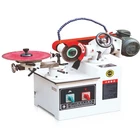 Power Tools MF125 Alloy Saw Blade Grinding Machine Small Manual Saw Blade 220V This machine is designed for sharpening various carbide saw blades. It features an adjustable ring clamp that maximizes support for the tooth face or other workpieces, preventing vibration and enhancing sharpening quality. Equipped with positioning pins, it allows adjustment to the optimal position based on the saw blade diameter. The sliding plate pivots horizontally, ensuring the saw blade's original grinding angle can be maintained or altered. The saw blade carriage features a swivel platform for adjusting the feed angle during grinding. This platform incorporates a slider, mandrel, and limit screw, facilitating operation while guaranteeing the grinding radius to the center. The grinding head includes a +45° rotation mechanism to accommodate grinding beveled saw blades.