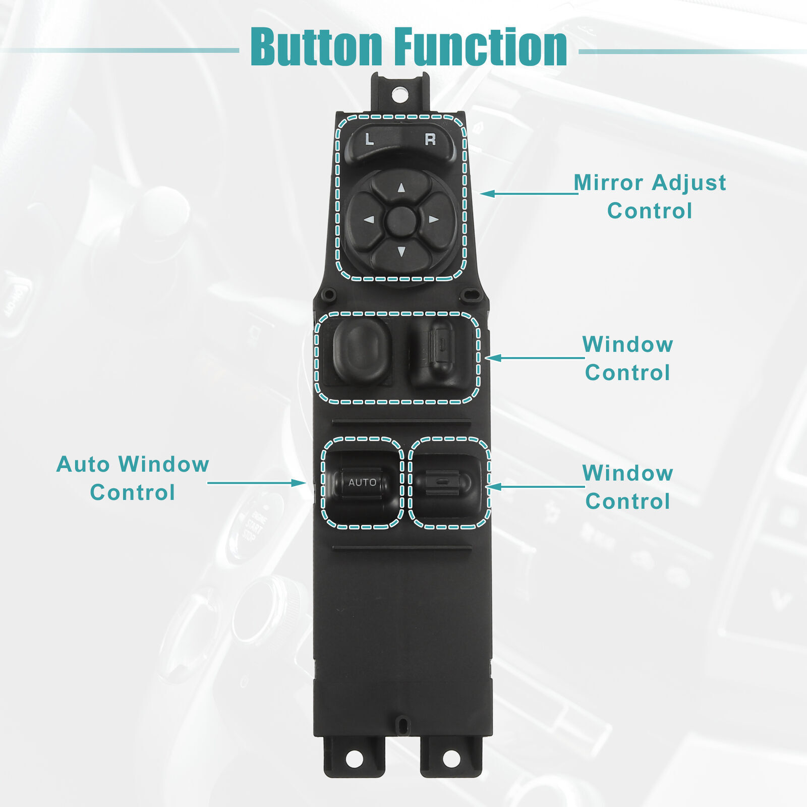 Item Type: Power Window Switch Condition: Brand New Warranty: One Year Warranty OE Number: 56045538AA, 56045538AB, 68193532AA, 68193532AB Quantity Sold: One Piece Vehicle Information: Make Model Year Body Style Location Note Dodge Dakota 2001-2004 2-Door Front Left Dodge Ram 1500 2004 2-Door Front Left Black Finish Dodge Ram 1500 2002-2003 2-Door Front Left Dodge Ram 2500 2003 2-Door Front Left Dodge Ram 2500 2004 2-Door Front Left Black Finish Dodge Ram 3500 2003 2-Door Front Left Dodge Ram 3500 2004 2-Door Front Left Black Finish Product Specifications: Product Type Power Window Switch Location Front Driver