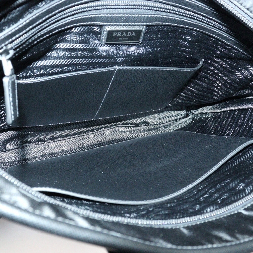 This Prada bag is a total game-changer—so versatile as a tote, shoulder bag, or handbag! The black leather with sleek silver fittings gives it a timeless, elegant look. Spacious enough for daily essentials, yet not bulky. The adjustable strap makes it super comfy to wear. Love that it comes with all accessories, and the minor wear just adds character. A must-have for any fashion lover!
