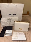 This stunning Prada bag is a timeless must-have! The sleek black and white Saffiano leather looks ultra-luxurious while remaining practical for everyday wear. I love how the adjustable gold chain strap lets you switch between crossbody and shoulder carry effortlessly. The compact size fits all my essentials without feeling bulky, and the structured design holds its shape beautifully. Comes with all original tags, dust bag, and receipt—perfect for collectors. The high-end craftsmanship and iconic Prada quality make this investment piece worth every penny. It instantly elevates any outfit, from casual jeans to evening dresses. A true wardrobe staple!