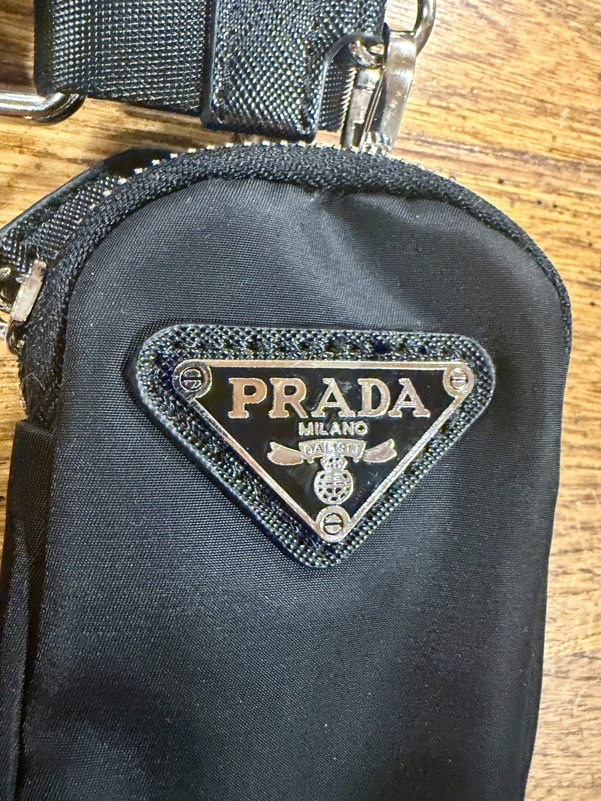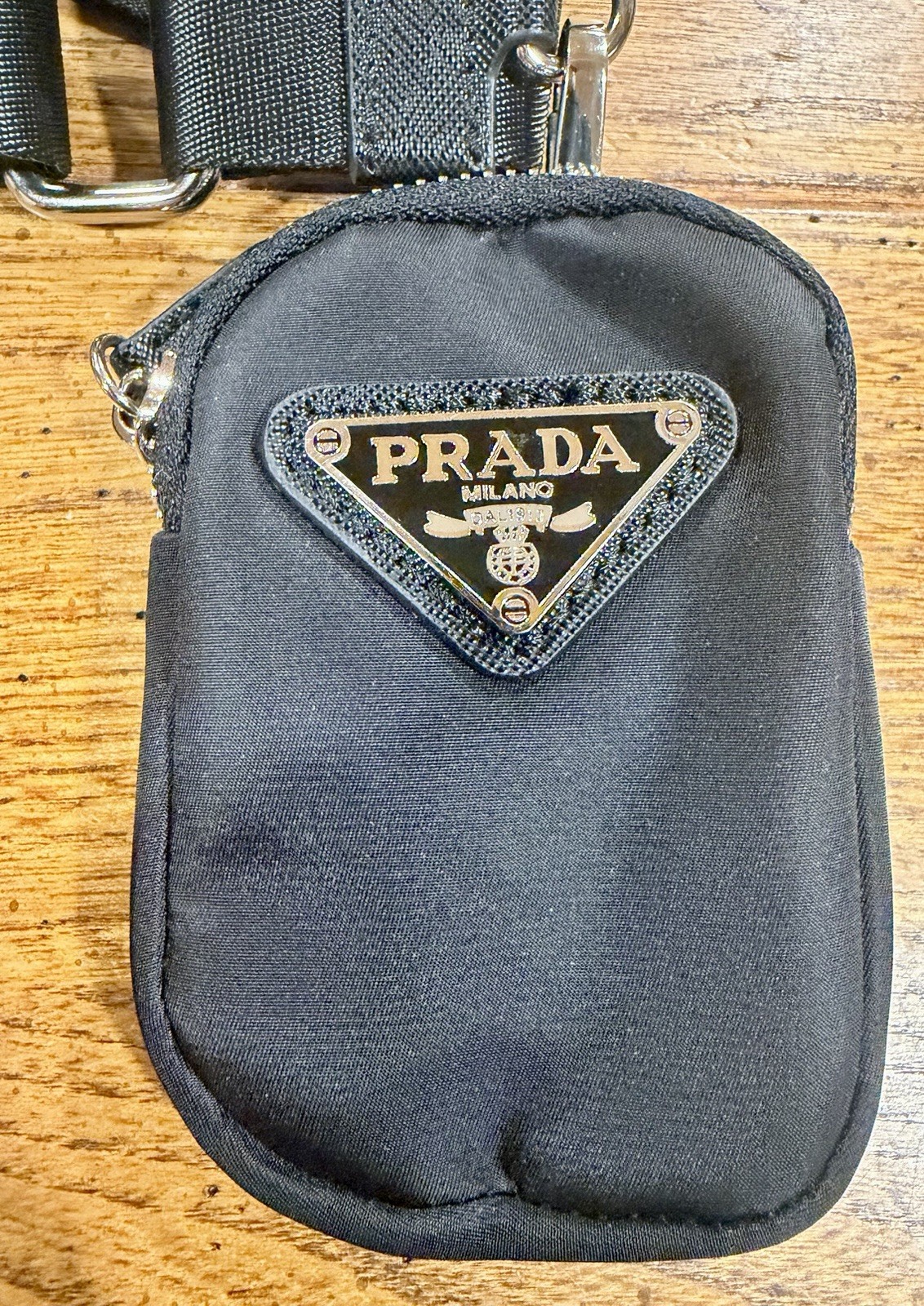 The Prada Black Nylon Mini Pouch is a stylish accessory case designed for women. Made from durable nylon material, this mini belt bag features a shoulder strap handle style, making it convenient to carry on the go. The sleek black exterior color adds a touch of sophistication to any outfit, perfect for keeping essentials organized in style.
