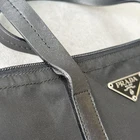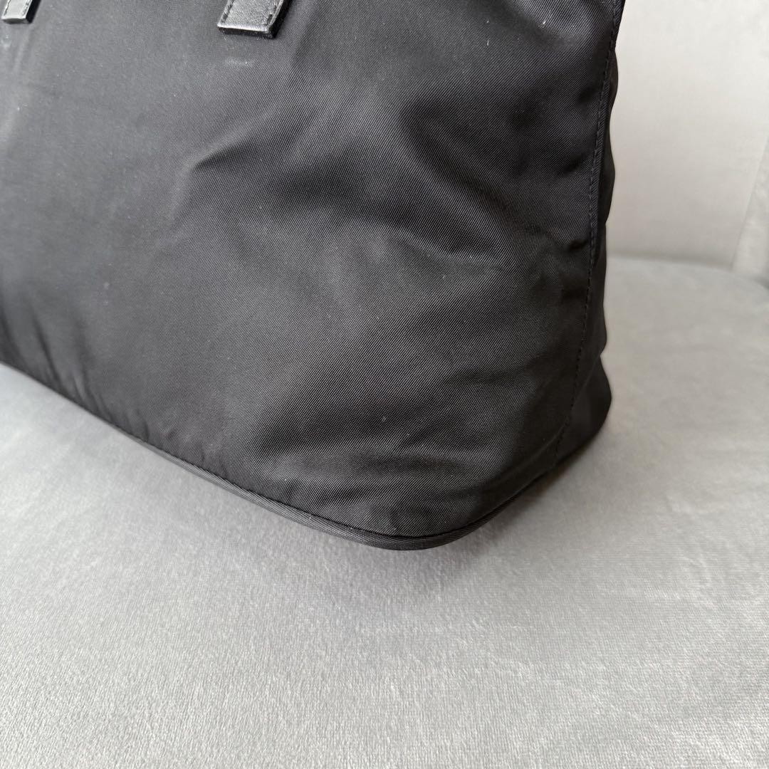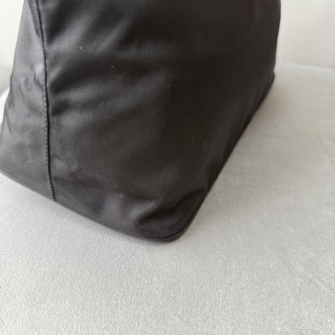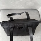 This is a Prada nylon tote bag with a black color scheme and a triangular logo plate. The dimensions are approximately 7.48 inches in height, 12.99 inches in width, and 6.69 inches in depth. It is a nylon tote bag. There are slight peels on the handle, but the body is in good condition. No accessories are included. I promise fast shipping via FedEx or DHL as soon as possible! Import duties, taxes and charges are not included in the item price or shipping charges. These charges are the buyer’s responsibility. These charges are normally collected by the delivering freight (shipping) company or when you pick the item up - do not confuse them for additional shipping charges.