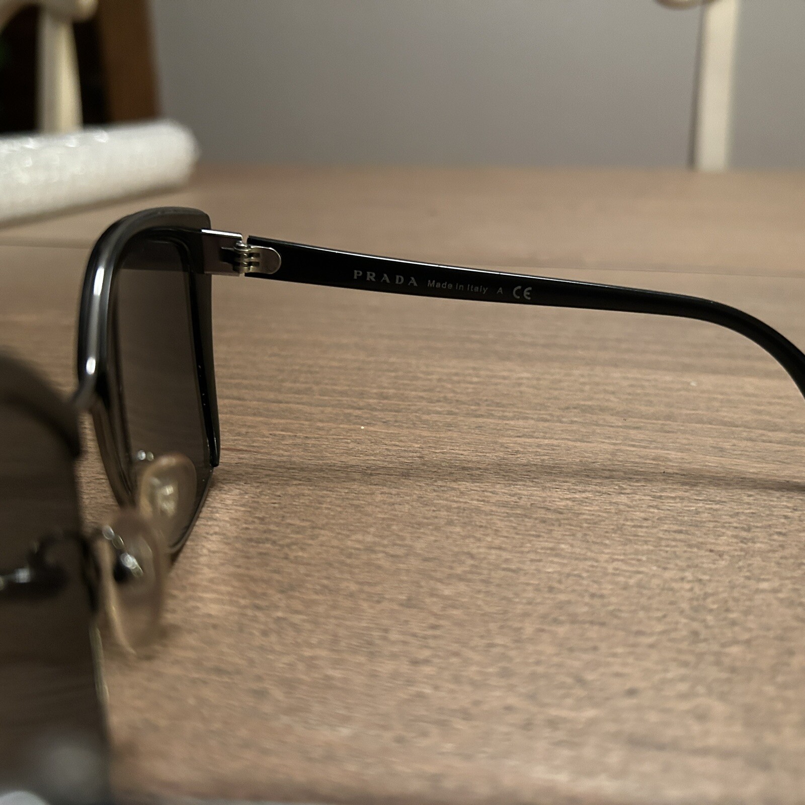 Elevate your style with these authentic PRADA cat eye sunglasses for women. These stunning sunglasses are the perfect accessory to complete any outfit with a sleek design! Crafted with care, these sunglasses are perfect for any occasion. The PRADA brand is synonymous with luxury and these sunglasses are the perfect accessory to complete your fabulous look! Sunglasses also come with hard case! Item has a Little wear in the lens, (as showing in the photos) no returns. Thank you.