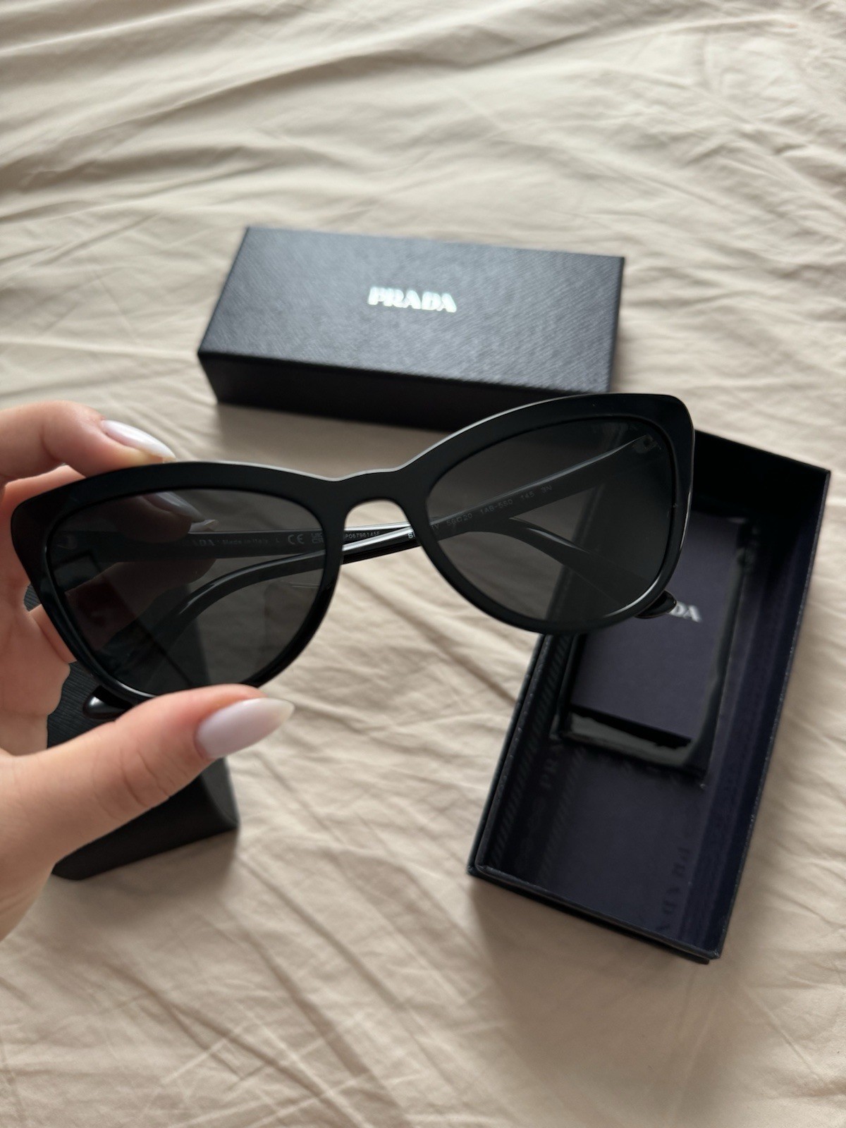 These Prada cat-eye sunglasses are a total steal! Lightweight, stylish, and in flawless condition—they look brand new. The lenses give great clarity, and the frame is super comfortable. Comes with the protective case, so they stay safe. Perfect for adding a chic touch to any outfit. Absolutely love them!