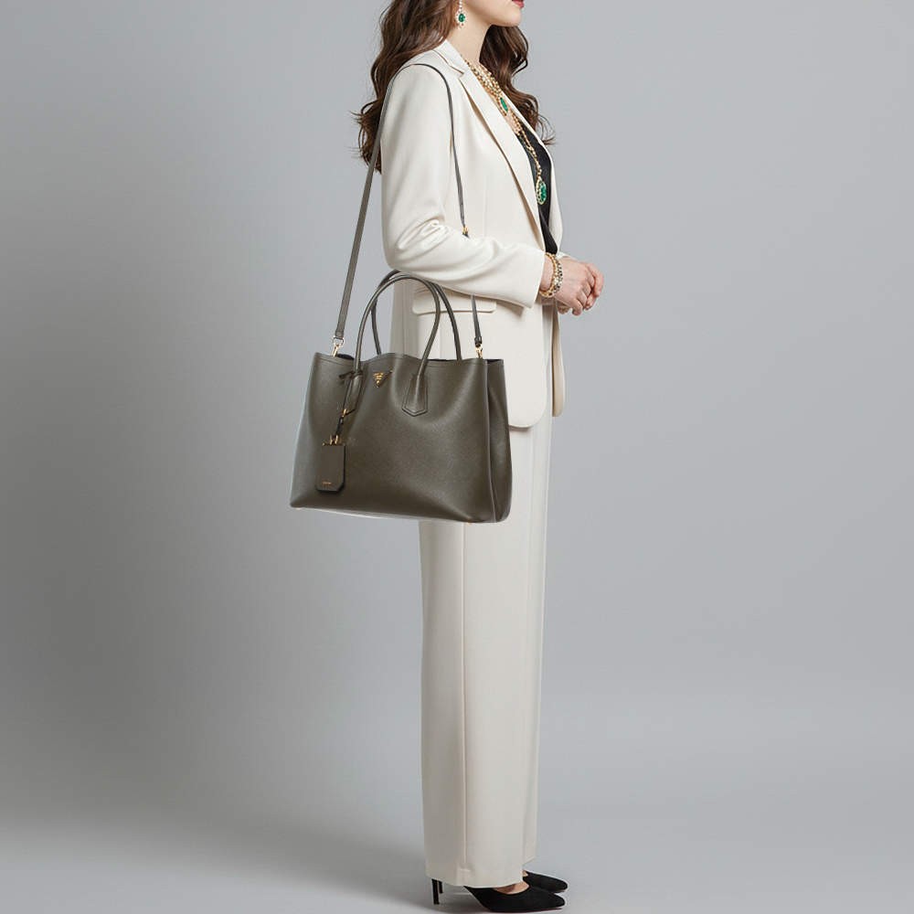 Our eBay Store About Us Contact Us Add to Favorite Sellers Prada Double Handle Medium Green Saffiano Cuir Leather Tote Crafted in Prada’s signature Saffiano cuir leather, this medium tote comes in a rich green shade with a refined, timeless look. The bag features double top handles and a spacious leather-lined interior secured for everyday use. Finished with subtle logo detailing, it works well for workdays and structured daily carry. Product Details Brand Prada Includes The Luxury Closet Packaging, Detachable Strap, Name Tag Certified by The Luxury Closet This item has gone through a detailed authentication process overseen by our experts. We offer a lifetime guarantee of authenticity on all our items. How We Check The in-house team of experts at The Luxury Closet is highly trained to verify the authenticity and the condition of the luxury products. They ensure that only 100% authentic items are put on sale.The evaluation process is unique with its own mix of assessment criteria and differs according to the category. Each item is evaluated based on the following combination of hallmarks, hardware, stitching, symmetry, material, craftsmanship, stamping, codes, hologram stickers, and packaging. Our authenticators also check if the items have been modified or amended (e.g., aftermarket diamonds, replaced batteries, repaired bags, etc.) International Buyers Import duties, taxes and charges are not included in the item price. These charges are the buyers responsibility. Please check with your country’s customs office to determine what these additional cost will be prior to buying.