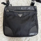 Prada Black Nylon Leather Shoulder Bag with Triangle Logo Designer Handbag