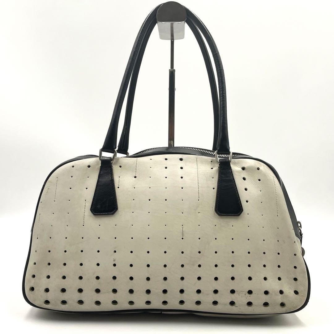 PRADA handbag tote bag, mini Boston bag, bowling bag featuring a triangular logo and white tag. It is made of bicolored black and white leather. The size is approximately 7.48 inches in height, 11.81 inches in width, and 4.33 inches in depth, with a handle drop of 6.30 inches. There is some feeling of use including scuffs, small scratches, and sunburn. There are some scratches and dirt, but it is a product that does not affect wearing. I promise fast shipping via FedEx or DHL as soon as possible! Import duties, taxes and charges are not included in the item price or shipping charges. These charges are the buyer’s responsibility. These charges are normally collected by the delivering freight (shipping) company or when you pick the item up - do not confuse them for additional shipping charges.