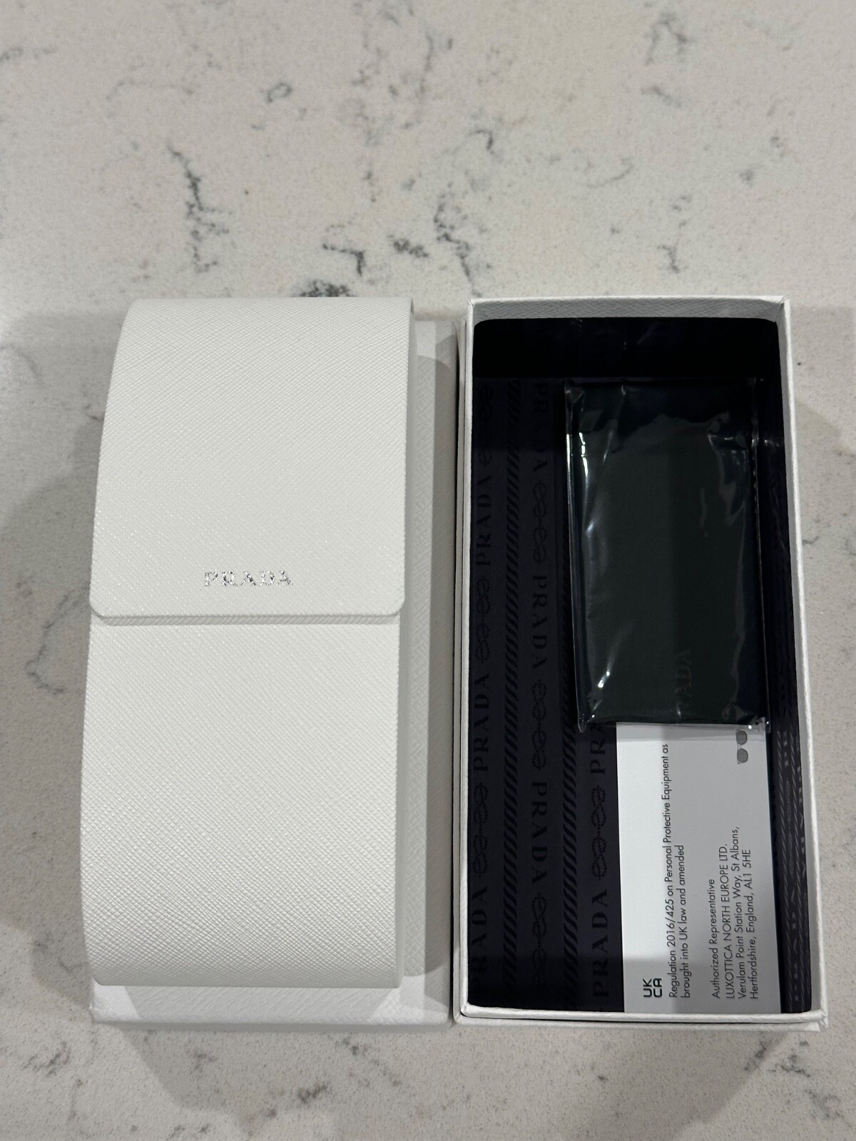 These Prada sunglasses are absolutely stunning! The sleek black frame and grey glass lenses give them a high-end, timeless look. The glass lenses are ultra-clear and durable, way better than plastic. They fit comfortably on wider faces and feel luxurious. For brand-new, unworn Pradas at this price, it's a steal—total luxury without the boutique markup!
