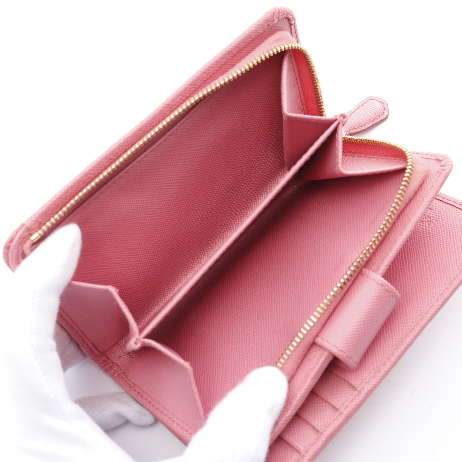 Description [Condition rank] [Used item] A Special damage - [Size] Vertical 9cm Horizontal 14cm Thickness 3.5cm [Product details] [Material] Saffiano leather [Color] Pink [Model number] 1ML225 [Serial number] - [Serial number] - [Accessories] Box Storage bag Guarantee card (with description)
