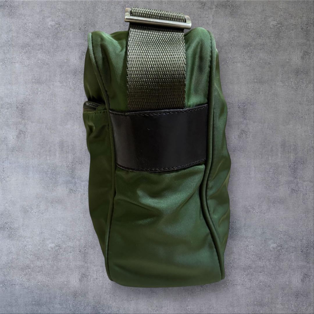 PRADA shoulder bag in green nylon and leather with triangular logo, camera bag, and multi-function features, includes guarantee card. Size: Vertical - 7.48 inches, Horizontal - 10.43 inches, Depth - 3.15 inches. Material: Nylon. Condition: Excellent, with no noticeable scratches or dirt. I promise fast shipping via FedEx or DHL as soon as possible! Import duties, taxes and charges are not included in the item price or shipping charges. These charges are the buyer’s responsibility. These charges are normally collected by the delivering freight (shipping) company or when you pick the item up - do not confuse them for additional shipping charges.