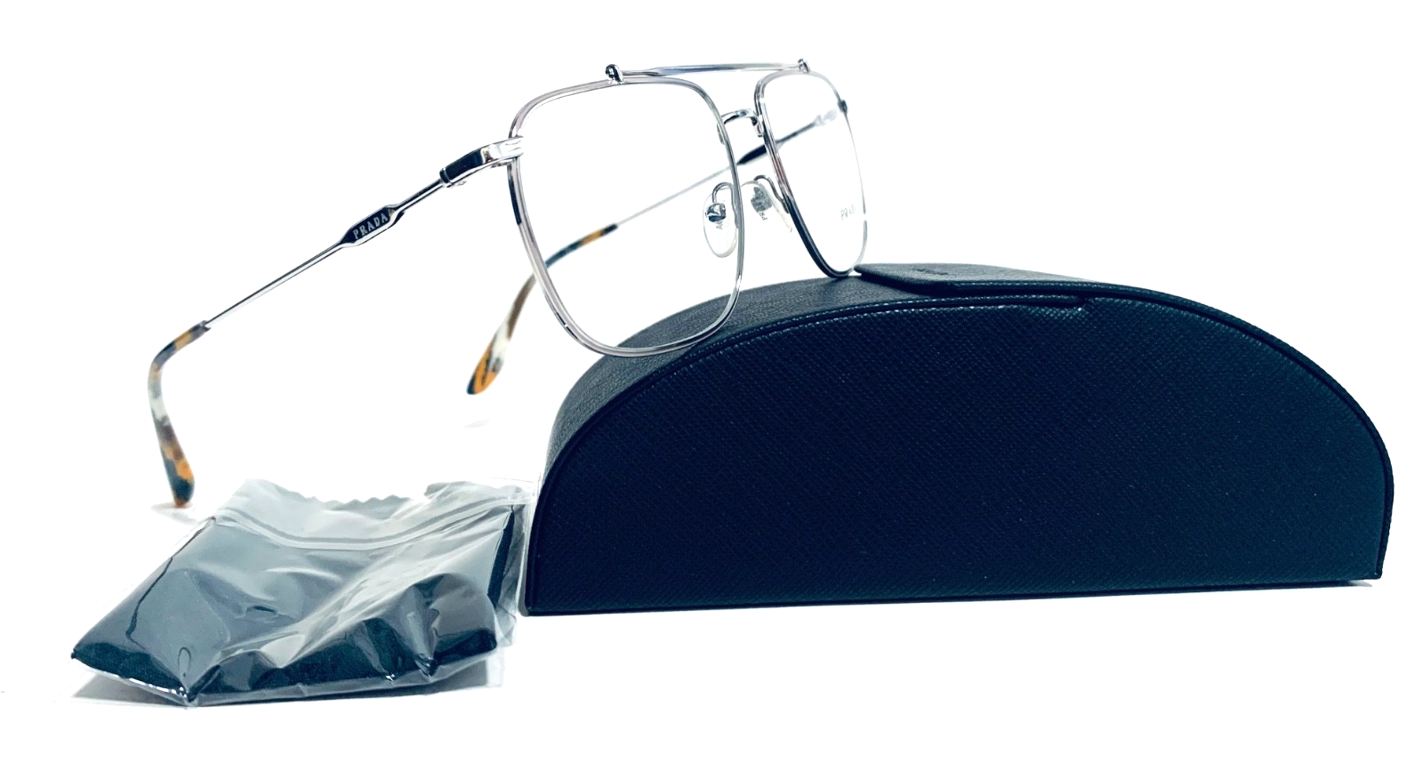 RACCOON STASH WELCOMES YOU! 100% Money Back Guarantee! NEW AUTHENTIC PRADA VPR 56U 1BC-1O1 Silver Metal Square Aviator RX Eyeglasses Frame MADE IN ITALY Model: PRADA VPR 56U 1BC-1O1 Color: Silver Metal / Tortoise Tips Lens Color: Clear RX Demo Size: 55-18-145 MM The frame is brand new, never used or worn! COMES WITH ORIGINAL PRADA CASE and PRADA Cleaning Cloth. Case model may vary! All items are packaged carefully for shipping to prevent any damage during transportation. International Buyers - Please Note: Import duties, taxes, and charges are not included in the item price or shipping cost. These charges are the buyer's responsibility. Please check with your country's customs office to determine what these additional costs will be prior to bidding or buying. If you have any questions please feel free to ask. Thank you for choosing us for your optical needs! Item ID: RV 012_016
