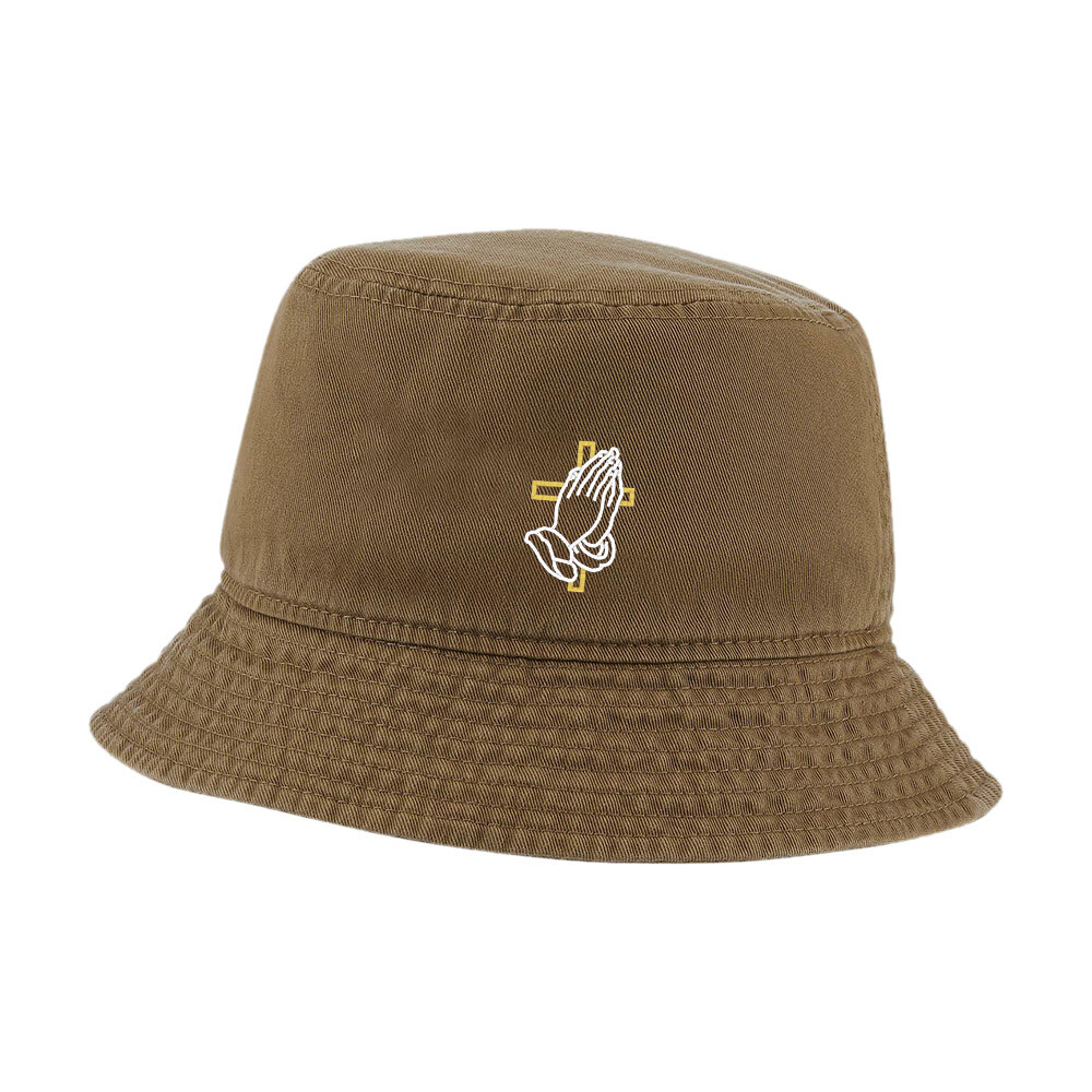 Praying Hands Cross Embroidered Bucket Hat for Men & Women