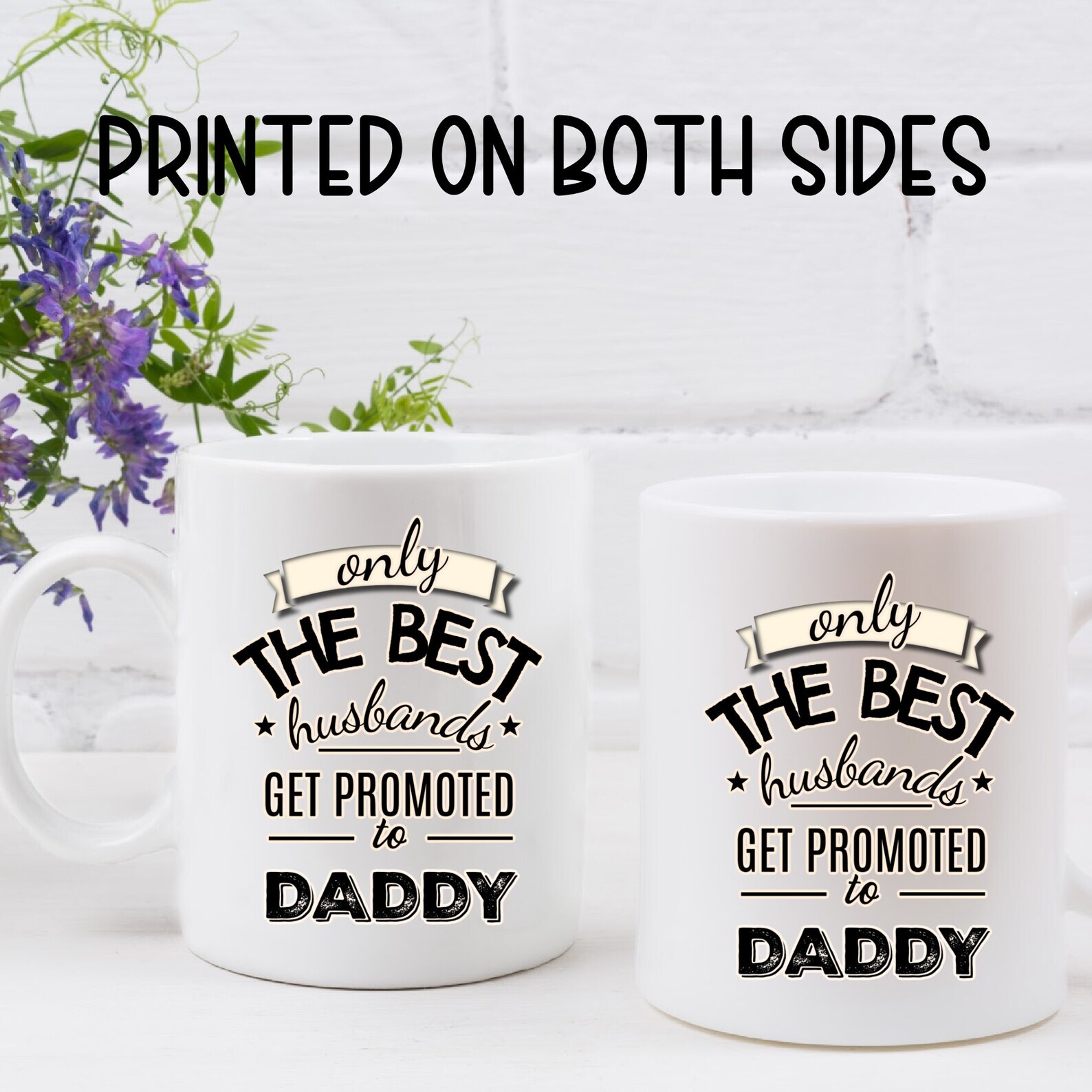 Pregnancy Announcement To Husband Coffee Mug Best Husband Mug Promoted To Daddy Mug Future Daddy Gift Daddy To Be Gift From Wife Product Details.. This high quality 11oz. ceramic white mug has a premium hard coat that provides crisp and vibrant color reproduction sure to last for years. Perfect for all hot & cold beverages. The highest quality printing possible is used. It will never fade no matter how many times you wash it. Material: 100% Ceramic. Print both sides. Dishwasher and Microwave Safe. High Gloss + Premium White Finish. Printed in the U.S.A. Personalized & Custom. We support personalized and custom mug to add custom, when placing an order, you can add notes to the "order note" in shipping address section. Also you can contact us directly via message. Shipping Info. Ready to ship in 1 to 2 business days, All products are made-to-order and proudly printed in the United States. Shipped by USPS and DHL, You will receive your order in 5-7 days. Replace & Refund. All products are defective during shipping broken, chipped will be replaced free of charge. You are not satisfied with the product, we will refund 100% money to you. If any other issues arise, please do not hesitate to message, we would be more than happy to assist you.