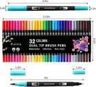 About this item DUAL TIPS PENS: 0.4 mm fine point tip is great for outlining, detail and drawing; 1-4mm Brushes tip allows you easily laying down thick, thin, or varied lines in one stroke, works well for coloring books, signing, design, art project and hand lettering. 32 UNIQUE COLORS:Each art markers set Includes 32 dual-tip brush markers (1-4mm) with ultra-fine tip (0.4mm) for a total of 64 complementary colors (broad dark color and fine light color). Dual colors double your creativity and fun! These artist markers are a must for your next masterpiece. GREAT MARKERS FOR KIDS & ADULTS: Markers for Mom, Women, Men, adults, teacher, college students, beginners and For using in school, travel or used in the home and office. SAFE AND NON-TOXIC: Water-based ink, easy to wash on clothes and skin.children can safely explore their creativity.Please note: Those dual pens are not for child under 3 years old. WIDE USE: Coloring Markers for adult coloring book, drawing, sketching, writing, journaling, brush lettering, calligraphy pens, design, manga, fine art, crafting, doodling, watercolor painting, illustrations, bullet journal, planner, calendar, card making, stamping, scrapbooking.