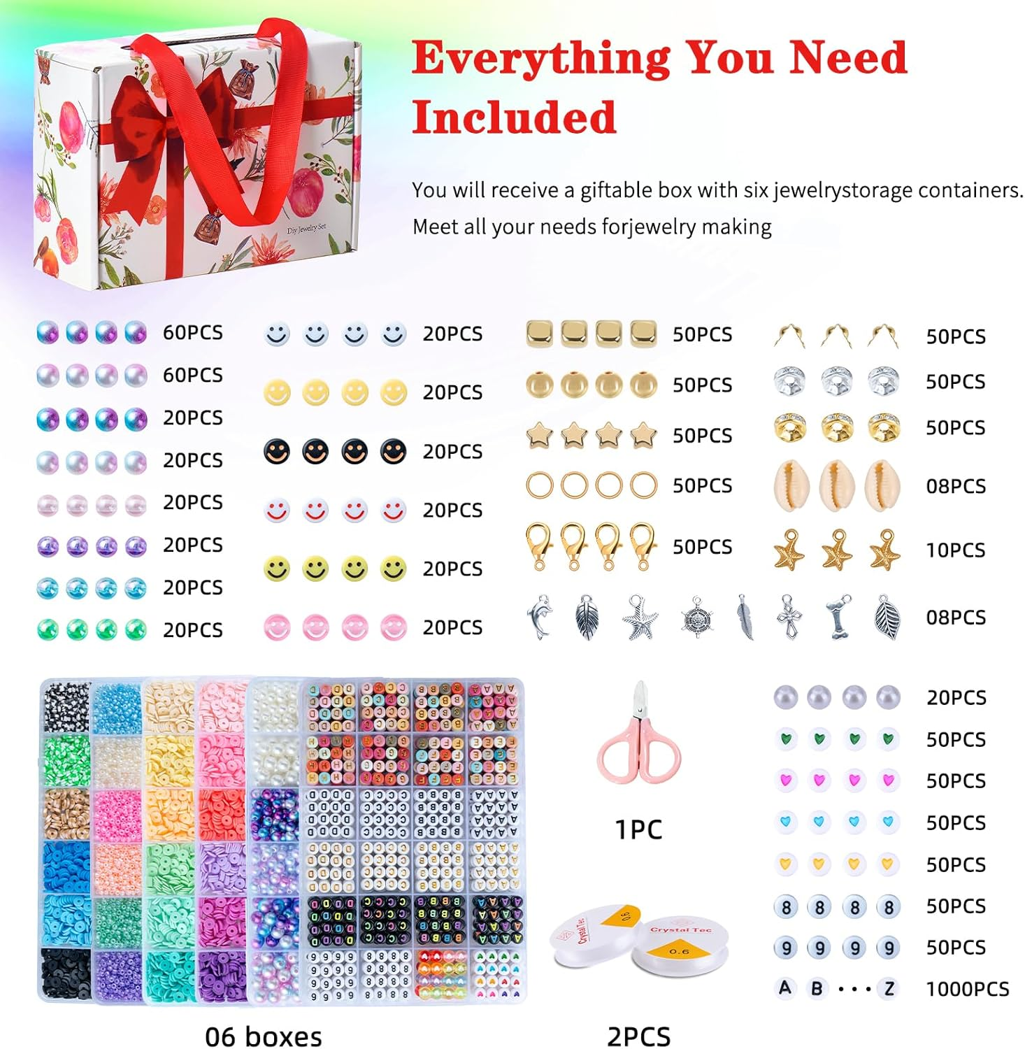 Menu Other Items Feedbacks About Us Contact Us Add To Favorites Premium 6-Box Clay Beads Bracelet Making Kit - 12,000 Polymer & Heishi Beads in 96 Colors,Jewelry Kit with over 1,300 Letter Beads & Exclusive Mermaid Charms - Gift for DIY Enthusiasts đ ăDiverse Clay Bead Collectionă: Dive into our expansive 6-box set, offering 12,000 pieces. With a spectrum of 96 vibrant clay bead colors , the design possibilities are truly endless. đŚ ăExpress Yourself with Lettersă: With over 1,300 unique letter bead styles at your fingertips, craft personalized messages, names, or phrases, ensuring each jewelry piece resonates with your individuality. đ§âď¸ ăMagical Mermaid Charmsă: Our kit uniquely features enchanting Mermaid Charm beads, allowing you to create mesmerizing charm bracelets that truly stand out. đ ăComplete Jewelry Crafting Experienceă: From Heishi beads to an array of accessories like heart, evil eye, and star beads, to pendants and lobster clasps - this Jewelry Kit ensures you're equipped for any project, be it bracelets, necklaces, or earrings. đ ăThe Perfect Crafting Giftă: Housed in an elegantly designed box, our Clay Beads Bracelet Making Kit is the ideal gift for those passionate about DIY. Ignite creativity and craft pieces that are worn with pride. Product Description Item Specification Item model number 12000 beads Item dimensions L x W x H 8.6 x 5.5 x 4.5 inches Age Range (Description) Kid,Adult Color dreamworld Material Polymer Clay Beads Country of Origin China Style Box Item Weight 2.72 pounds Size Small Model Name 12000 beads Art Craft Kit Type ART_CRAFT_KIT Number of Pieces 12000 Special Feature Mermaid charm beads, over 1,300 letter beads for personalization Product Dimensions 8.6 x 5.5 x 4.5 inches SHIPPING FREE FREE SHIPPING We are always working hard to ensure your package arrives as soon as possible. Please understand that some factors like weather, high postal traffic, and the performance of shipping companies are outside of our control. We offer free shipping to the lower 48 states. We do not accept P.O. Boxes. Please provide a physical address. If you have a problem or question regarding your transaction please contact us immediately. We will work with you to resolve any problem you may have. Thank you